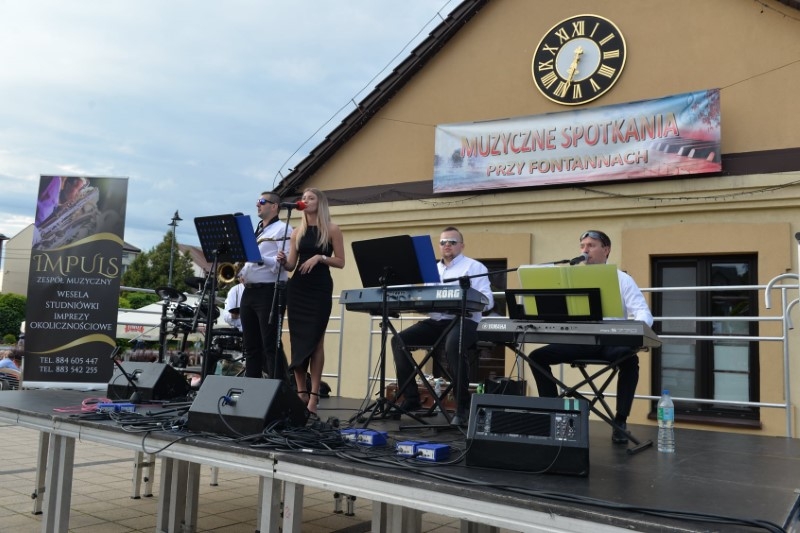 „Muzyczne spotkania przy fontannach” mają już swoją historię. To połączenie przyjemnych dla ucha dźwięków z cichym szumem fontann w tle i niepowtarzalną atmosferą Rynku w Połańcu. Tegoroczne muzykowanie rozpoczęliśmy z przytupem, na góralską nutę z zespołem Sprytni. To był świetny występ i nawet deszcz nie popsuł dobrej zabawy. Kolejne niedziele należały do młodzieżowego zespołu NEW MARK z GOK w Borowej i zespołu Muzyczny RETRO BAND z Mielca. Świetne aranżacje znanych piosenek w wykonaniu obu zespołów i animacje z najmłodszymi poprowadzone przez Justynę, wokalistę RETRO BAND zdecydowanie spodobały się połanieckiej publiczności. W pierwszą niedzielę sierpnia zagrała i zaśpiewała na ludową nutę KAPELA OLBRYSZANIE, a tydzień później zespół IMPULS. W ostatnią niedzielę wystąpił młodzieżowy zespół MARGINES ŁADU z Oblekonia. A już za tydzień zagrają aż dwa zespoły: MIELECKA KAPELA PODWÓRKOWA i zespół PARZENICA. Muzyczne spotkania zakończymy 5 września kulturalną niespodzianką. Będzie ciekawie i różnorodnie. Gorąco zapraszamy do udziału we wszystkich spotkaniach.