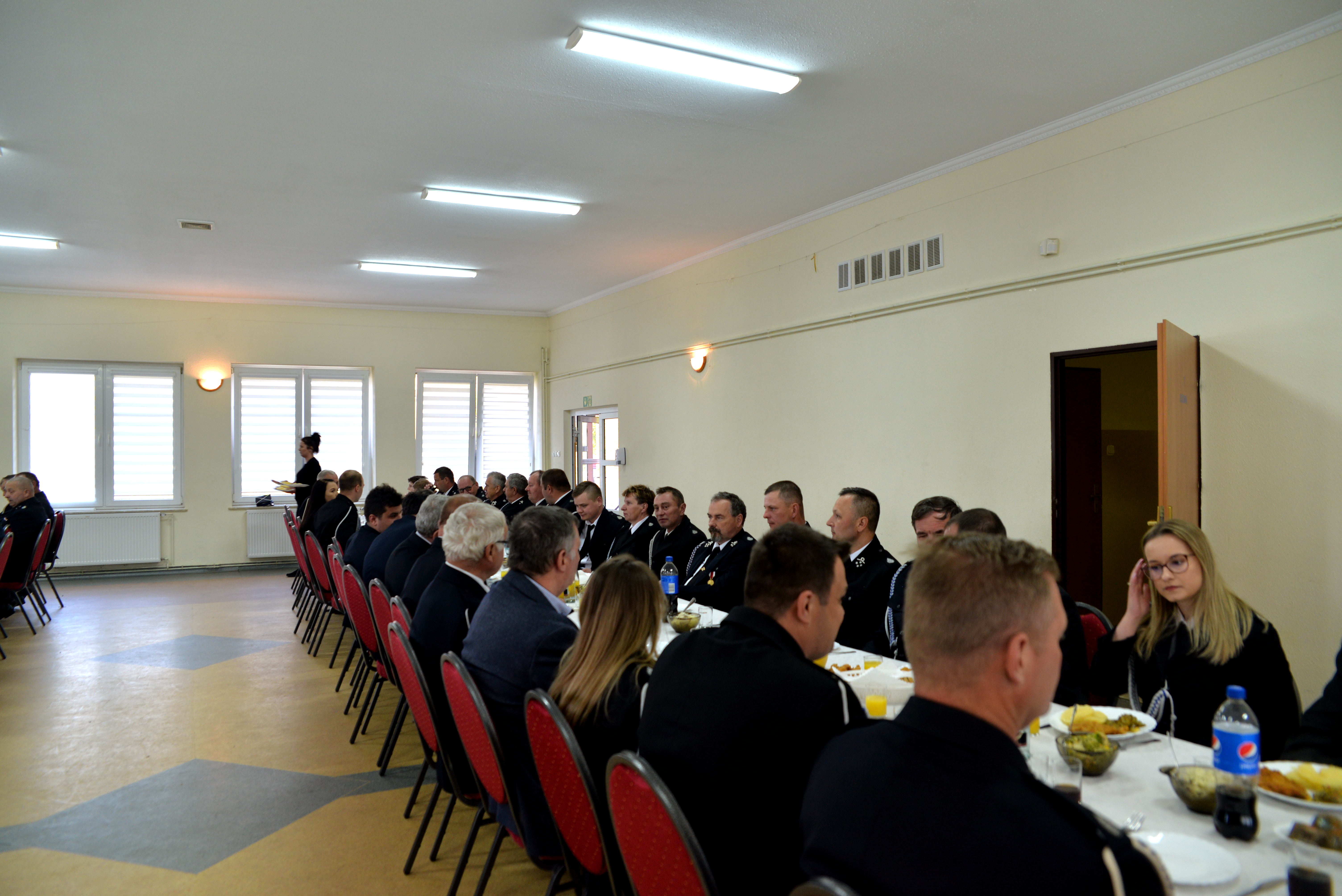 Następnie przed Kościołem pododdziały strażackie stworzyły kolumnę marszową i uroczyście przeszły do strażnicy w Ruszczy. W budynku Ochotniczej Straży Pożarnej burmistrz Miasta i Gminy Połaniec - Pan Jacek Nowak, Wiceprezes Miejsko Gminnego Zarządu ZOSP RP Krzysztof Marczewski, brygadier Jarosław Juszczyk - zastępca komendanta Powiatowej Państwowej Straży Pożarnej w Staszowie oraz Proboszcz Józef Grabda złożyli serdeczne życzenia i podziękowania wszystkim druhom za ich trud włożony w pracę.