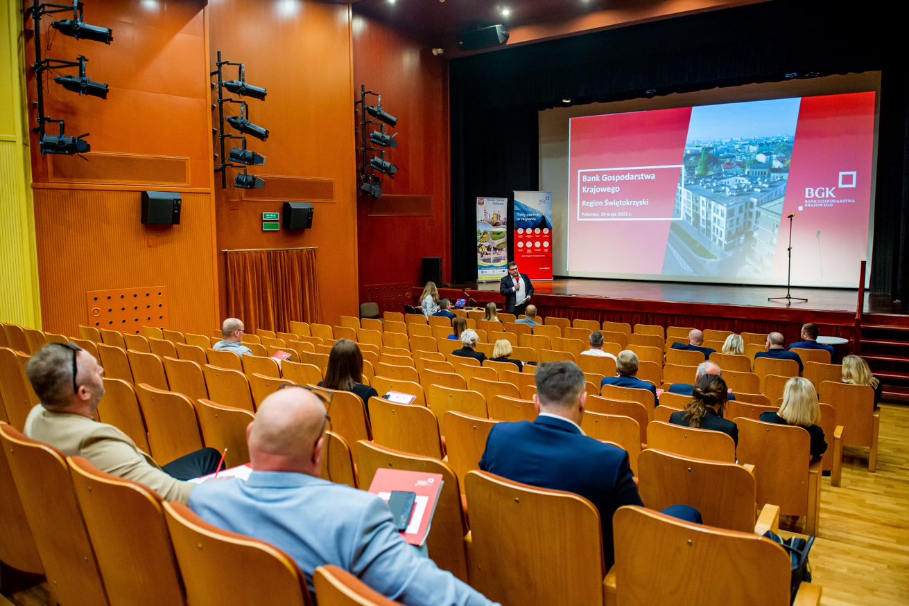 W spotkaniu uczestniczyli prelegenci z Banku Gospodarstwa Krajowego oraz Burmistrz Miasta i Gminy Połaniec - Pan Jacek Benedykt Nowak wraz z Sekretarz Gminy - Panią Bogumiłą Niespodziewaną. Zebranie otworzył Dyrektor Regionu Świętokrzyskiego BGK Piotr Waluszewski, który przybliżył historię Banku, aktualne działania oraz osiągnięcia. Następnie głos zabrał Piotr Dmitrowski, Menadżer Zespołu Analiz Finansowych, który omówił aktualną sytuację gospodarczą kraju oraz główne czynniki powodujące wzrost cen. Po tym wystąpieniu była przerwa kawowa podczas, której wszyscy zgromadzeni mogli lepiej się poznać, wymienić swoimi doświadczeniami oraz porozmawiać z prelegentami BGK, którzy chętnie udzielali informacji przybyłym na spotkanie. Po przerwie głos zabrał ekspert z Zespołu Relacji Finansowania Handlu BGK, gdzie omówił aktualne instrumenty finansowe, które BGK oferuje przedsiębiorcom oraz największe osiągnięcia Banku. W 2018 roku rozpoczął on ekspansję, otwierając przedstawicielstwa zagraniczne, które dziś działają w Brukseli, Frankfurcie, Londynie i Amsterdamie.
