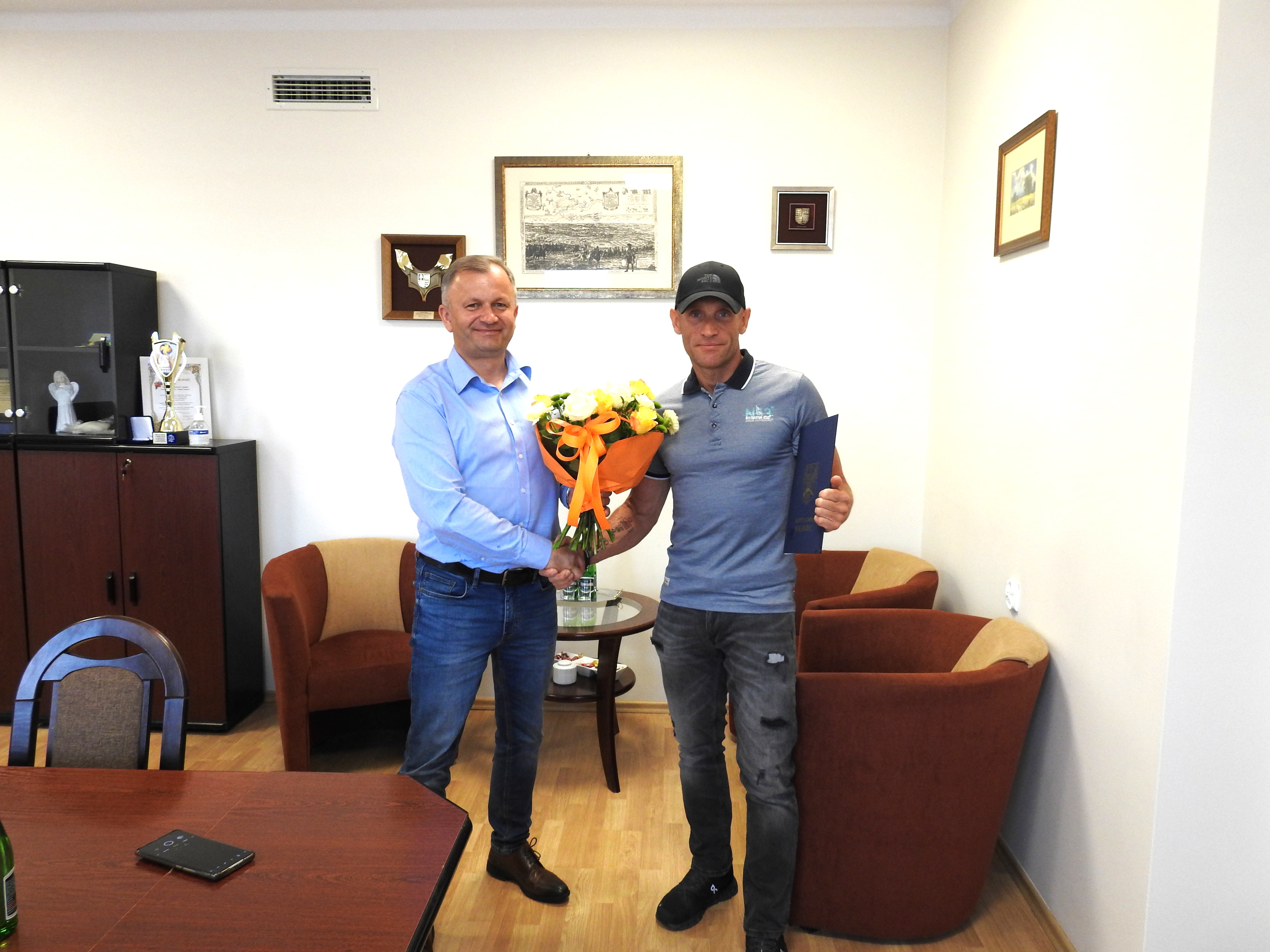 W dniu 08.07.2022 r. w budynku Urzędu Miasta i Gminy u Burmistrza – Pana Jacka Benedykta Nowaka gościł nasz Mistrz Rafał Godzwon.