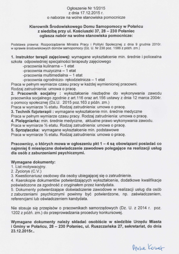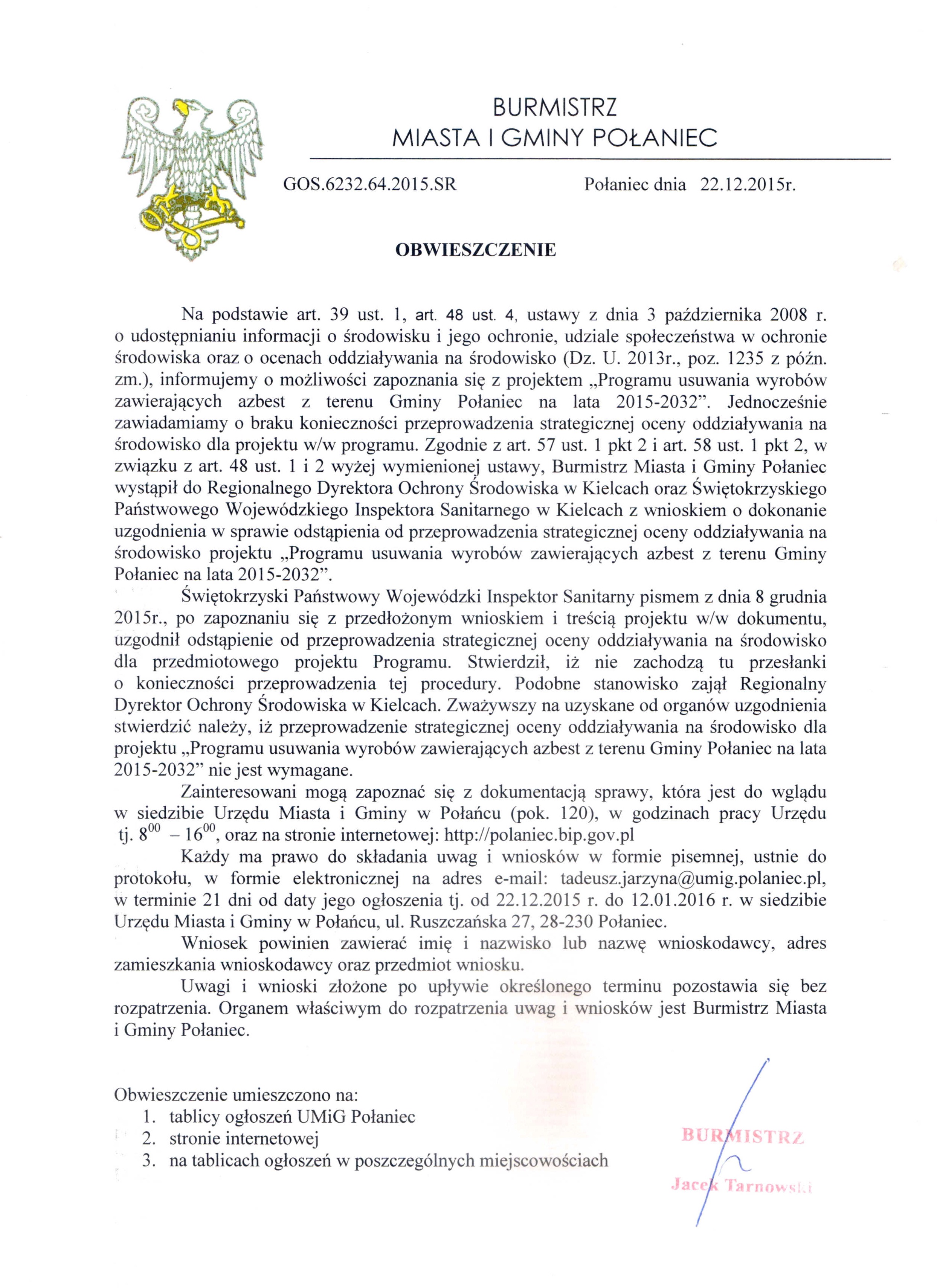 Projekt Programu Usuwania Wyrobów Zawierających Azbest z terenu Gminy Połaniec na lata 2015 - 2032