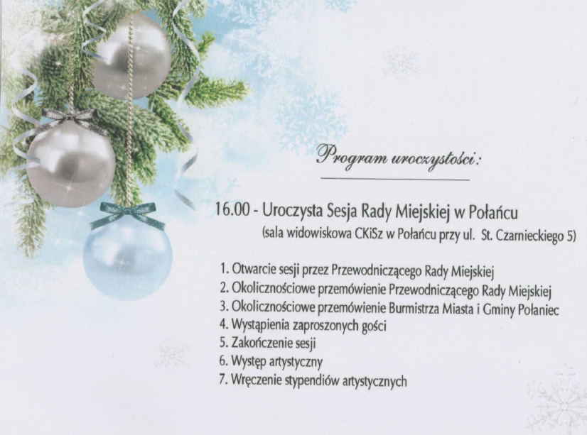 PRZEWODNICZĄCY I RADNI RADY MIEJSKIEJ ORAZ BURMISTRZ MIASTA I GMINY POŁANIEC ZAPRASZAJĄ NA UROCZYSTĄ SESJĘ RADY MIEJSKIEJ
