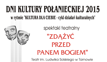 Kolejna propozycja teatralna w ramach Dni Kultury Połanieckiej w rytmie "KULTURA DLA CIEBIE - cykl działań kulturalnych" przygotowana została z myślą o młodzieży. "Zdążyć przed Panem Bogiem" to niezykle trudna rozmowa Hanny Krall z Markiem Edelmanem: uczestnikiem powstania w getcie warszawskim. W trakcie rozmowy zostaje postawione pytanie o sens ludzkiego życia....Co zatem było sensem życia Marka Edelmana?.... O tym dowiedzą się wszyscy, którzy 24 listopada o dodz. 10.00 przyjdą do Centrum Kultury i Sztuki w Połańcu.