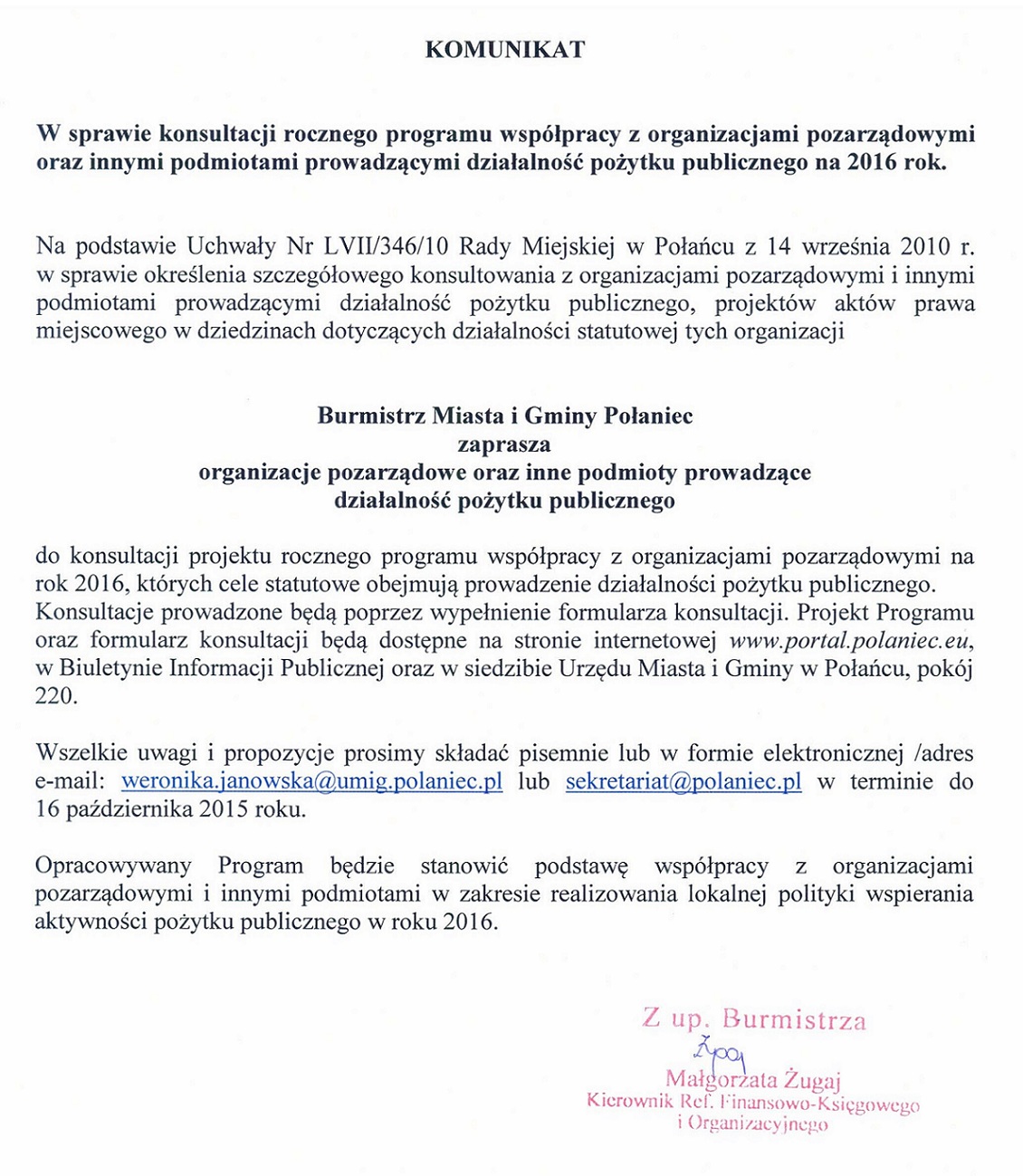 Miasto i Gmina Połaniec przygotowała strategiczny dokument dla rozwoju gospodarki energetycznej gminy pod nazwą Plan Gospodarki Niskoemisyjnej. Ma on na celu wskazanie możliwości zrównoważonego rozwoju poprzez realizację inwestycji efektywnych energetycznie, a zarazem wysoce ekologicznych. Jego zapisy dotyczą zarówno obiektów oraz infrastruktury publicznej, przedsiębiorstw działających na terenie gminy, a także jego mieszkańców. Ponadto, jego przyjęcie ułatwi pozyskiwanie dodatkowych, preferencyjnych środków finansowych w ramach perspektywy budżetowej 2014-2020. Co więcej w niektórych obszarach finansowania posiadanie Planu jest warunkiem obligatoryjnym przy ubieganiu się o środki.
