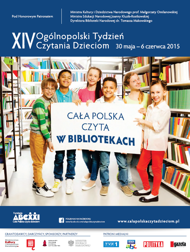 W dniach 30 maja – 6 czerwca obchodzony jest XIV Ogólnopolski Tydzień Czytania Dzieciomorganizowany przez Fundację „ABCXXI – Cała Polska czyta dzieciom”. To wielkie święto czytania zostało zainaugurowane podczas pierwszej ogólnokrajowej „Nocy Bibliotek”, do której włączyła się także i nasza Biblioteka.