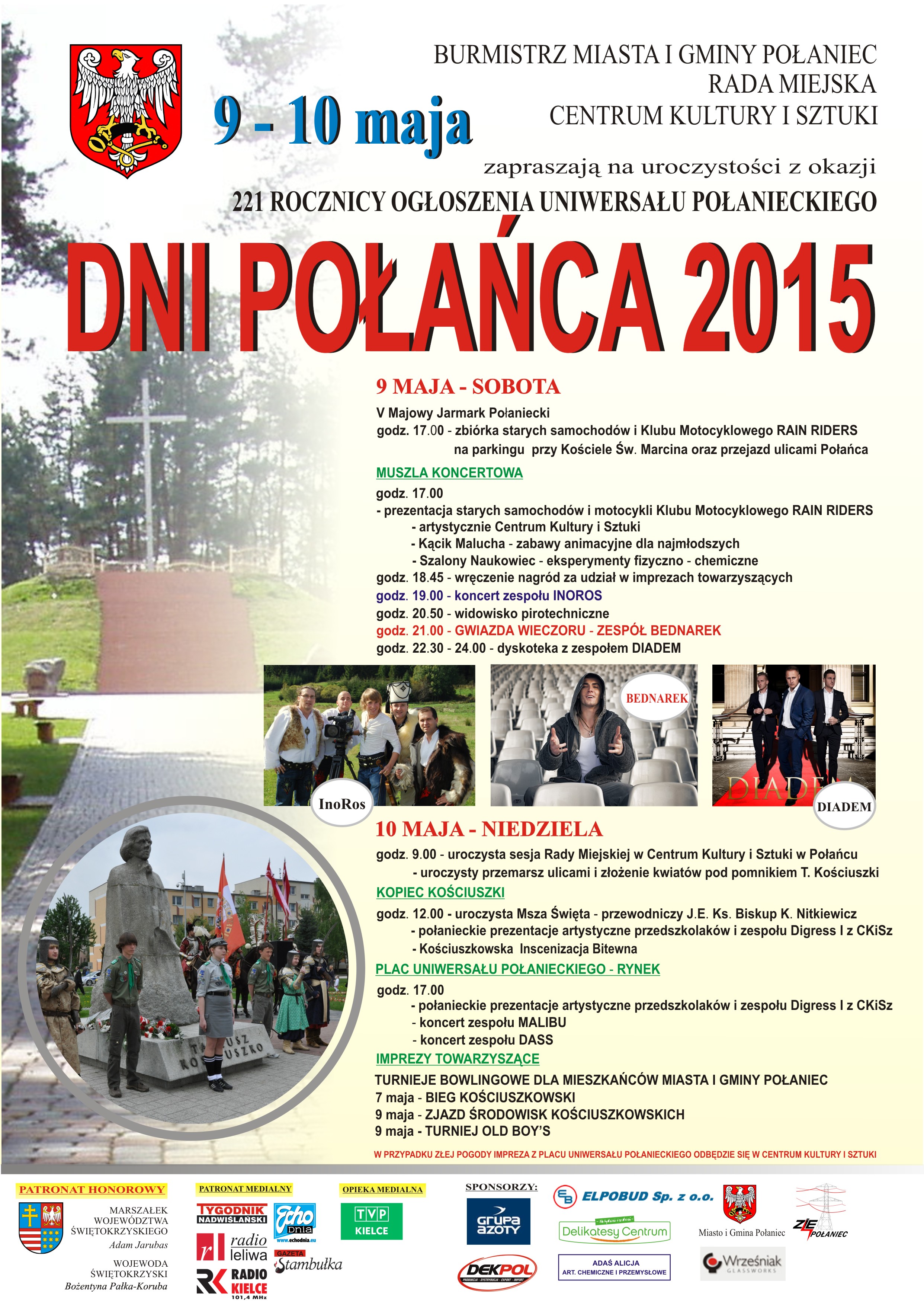 Zapomnieliśmy już o zimie na dobre. Jedni wypatrywali bocianów i przebiśniegów, inni szykowali kaski i jednoślady. Wraz z piękną pogodą, nastąpił wysyp motocyklistów. Coraz częściej ryk silnika słyszymy na ulicach Połańca i coraz częściej spotykamy miłośników dwóch kółek na drogach gminnych. To znak, że sezon motocyklowy w Połańcu rozpoczęty. Mszą, błogosławieństwem, przejazdem drogami gminnymi, ulicami miasta, wreszcie pokazem motocykli na Placu Uniwersału Połanieckiego KLUB RAIN RIDERS POŁANIEC rozpoczął tegoroczny sezon motocyklowy. Ponad 400 motocyklistów, a wśród nich członkowie Klubu Rain Riders Połaniec, motocykliści z powiatu i okolic, nawet z różnych stron Polski przyjechali w sobotę 25 kwietnia 2015r. do Połańca, aby uczestniczyć we Mszy Świętej, poświęcić swoje jednoślady i tym samym oficjalnie rozpocząć sezon motocyklowy. Pomysłodawcami kolejnego takiego zlotu w Połańcu byli członkowie Klubu Rain Riders Połaniec.