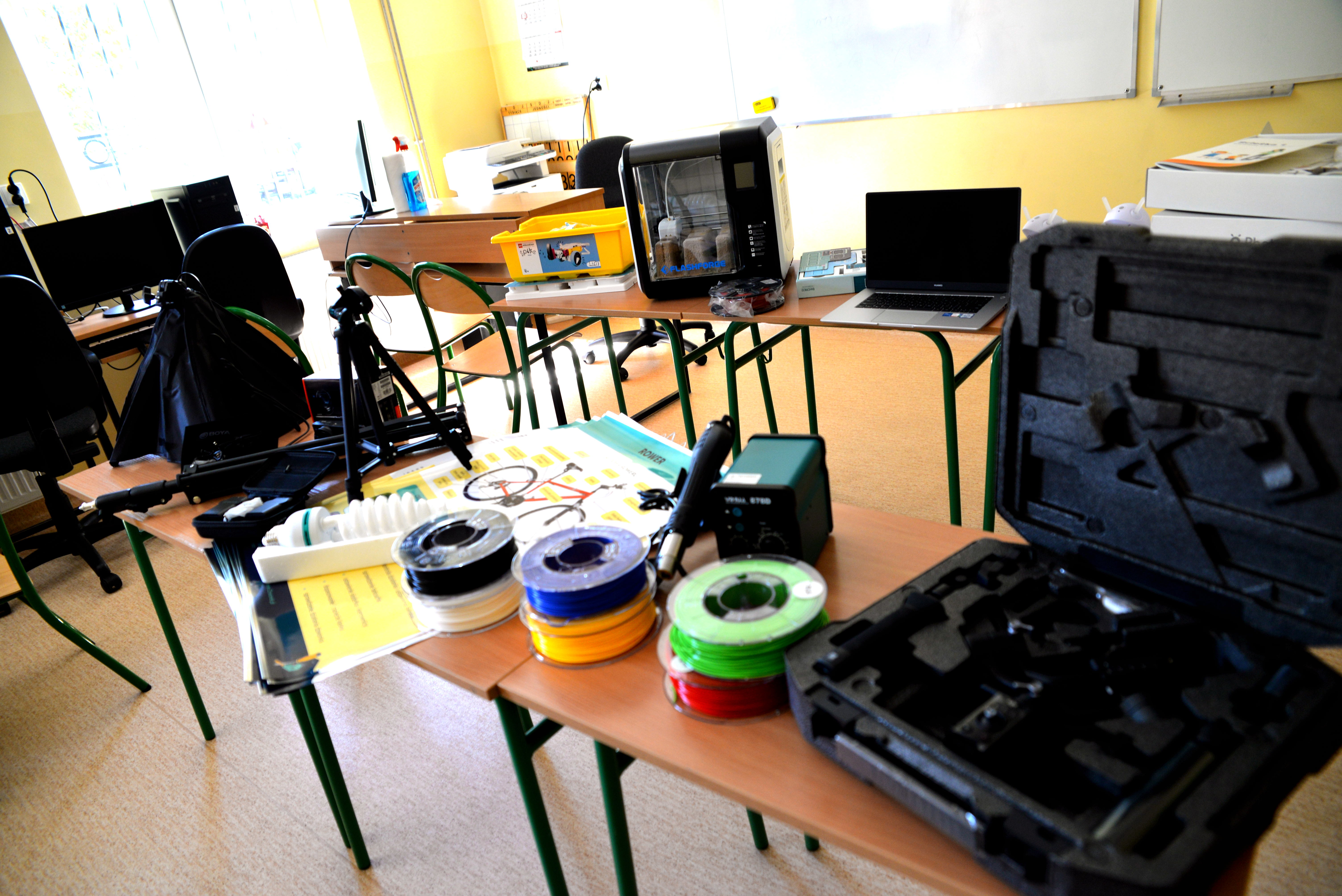 Wyposażenie pracowni szkolnej z programu ,,Laboratoria Przyszłości" w Zrębinie