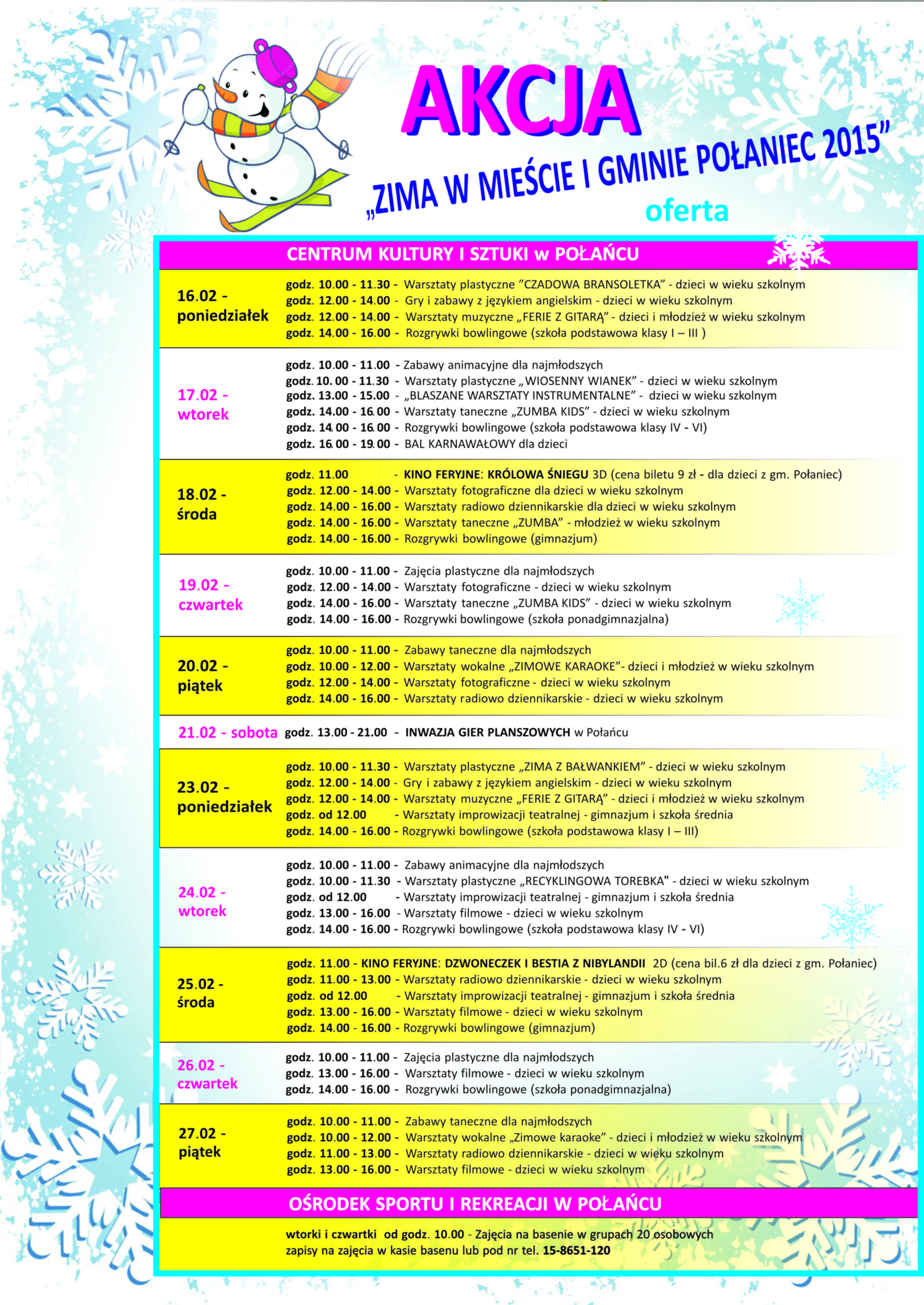 31 stycznia 2015 roku wolontariusze z III A Technikum Elektronicznego z Połańca w ramach akcji „Mikołajkowa podróż marzeń” skierowanej do wychowanków Domu Dziecka im. Ojca Gwidona w Pacanowie zorganizowali wyjazd z pozyskanych środków finansowych do Basenów mineralnych w Solcu Zdroju.