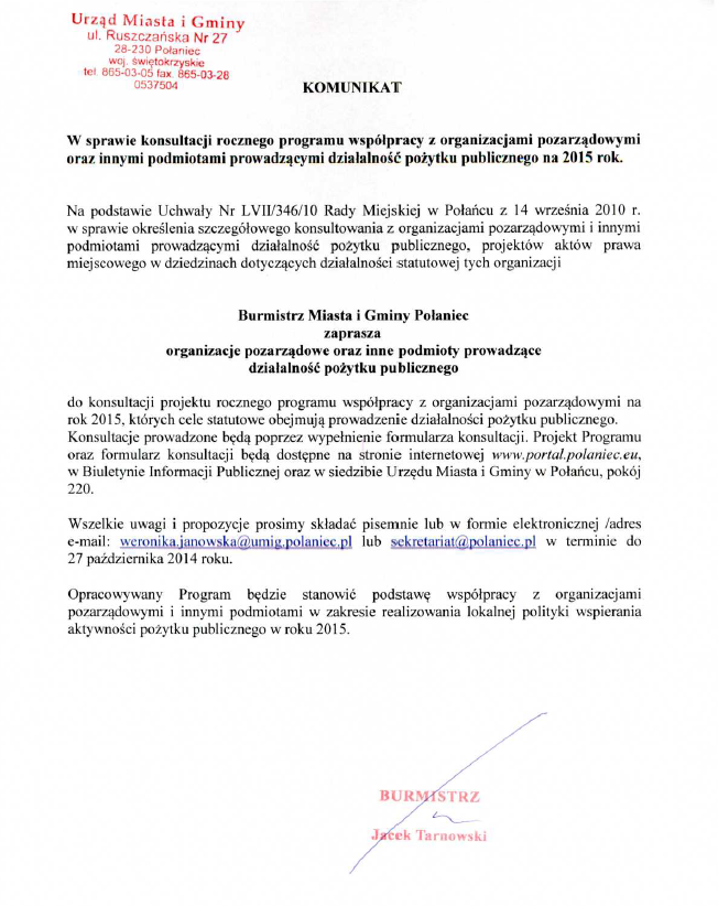 BURMISTRZA MIASTA I GMINY POŁANIEC