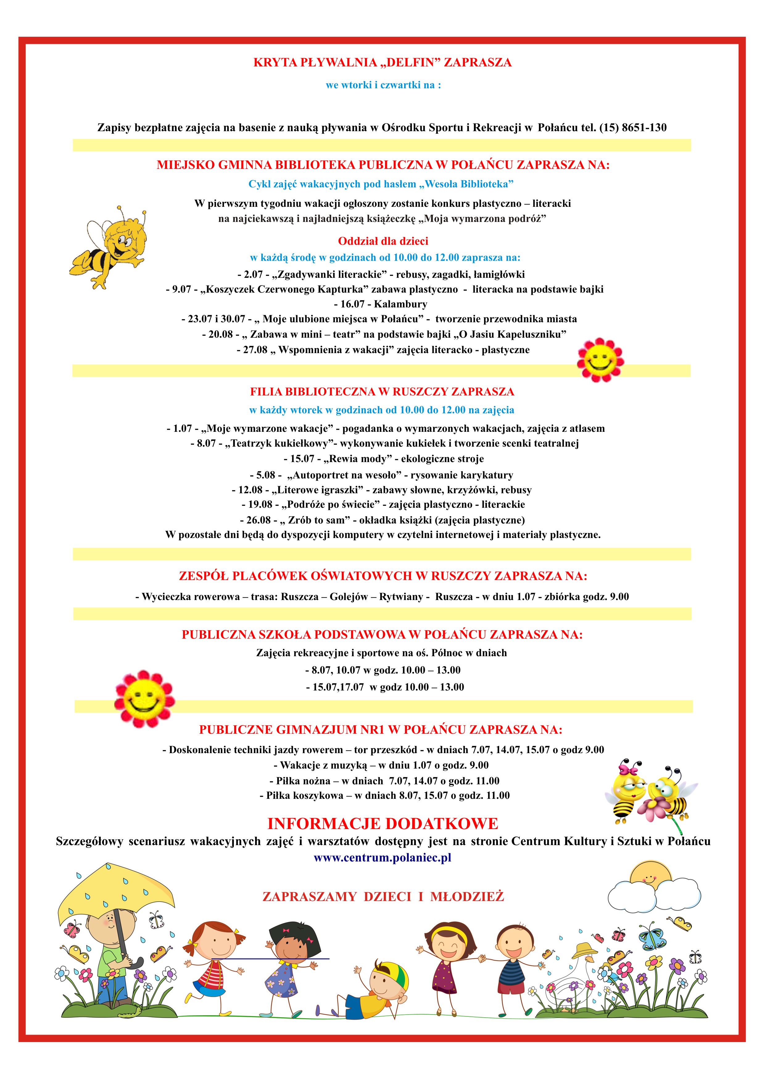 WAKACJE Z UŚMIECHEM W MIEŚCIE I GMINIE POŁANIEC 2014