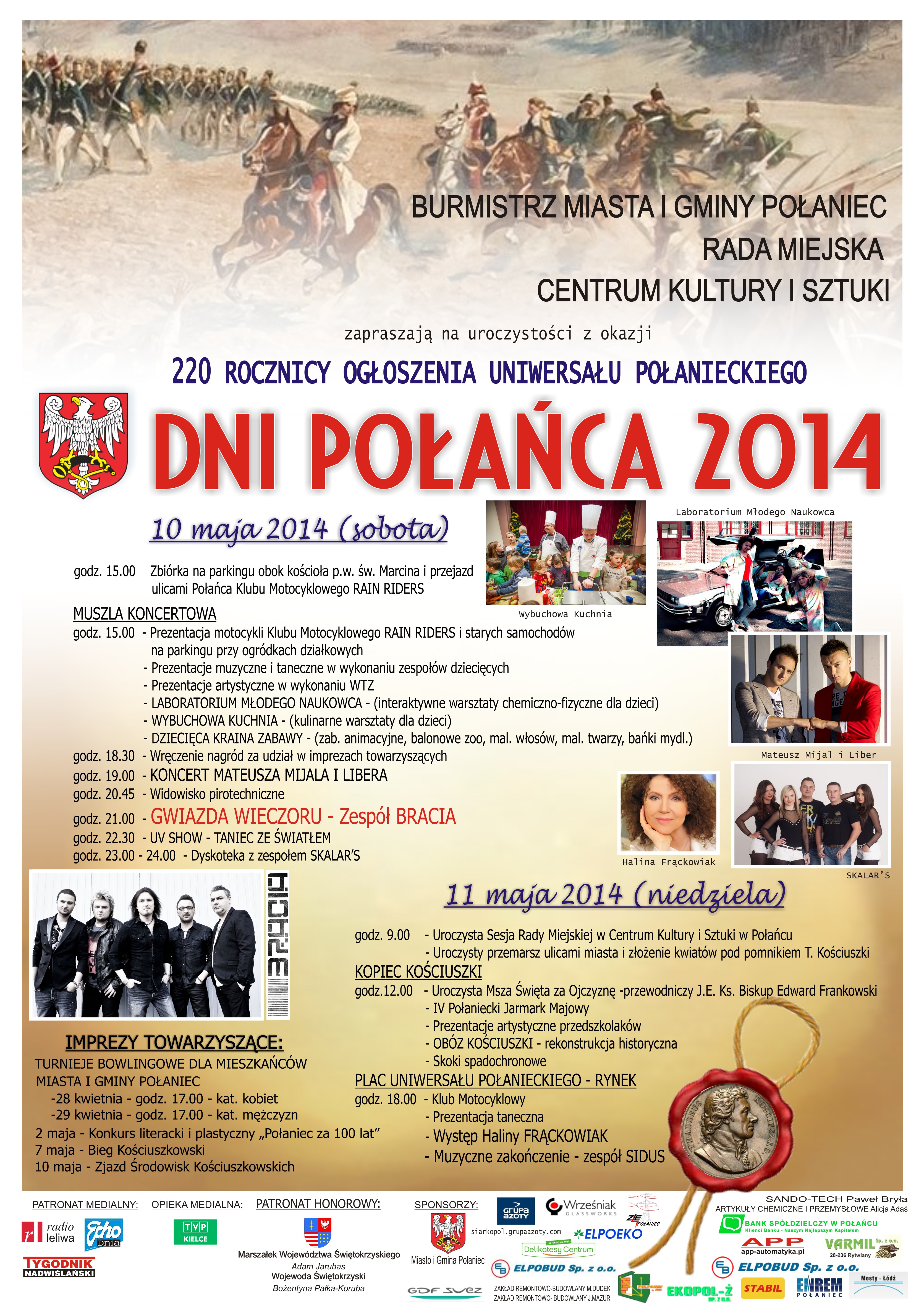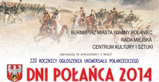 ZAPRASZAMY NA OBCHODY 220 ROCZNICY OGŁOSZENIA UNIWERSAŁU POŁANIECKIEGO - DNI POŁAŃCA 10-11 MAJA 2014