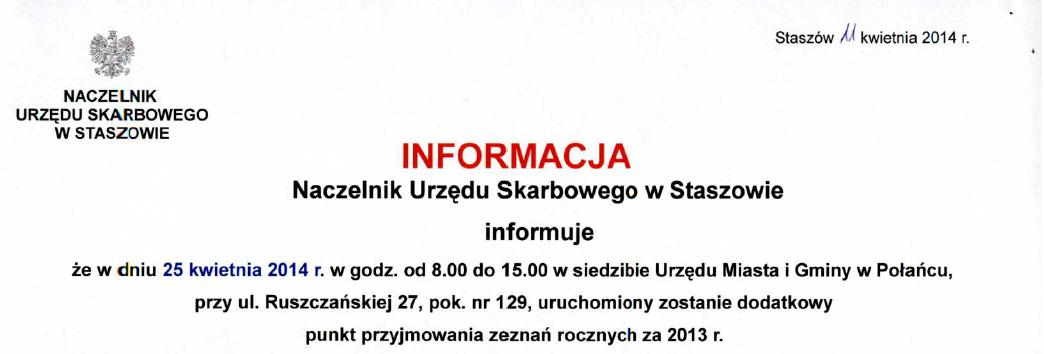 zebranie mieszkańców Samorządu Osiedla Nr 2 w Połańcu (czyli osiedli: Spółdzielni Mieszkaniowej, Żapniowskie i Południe) na dzień 23 kwietnia 2014 roku (środa), godz. 1800