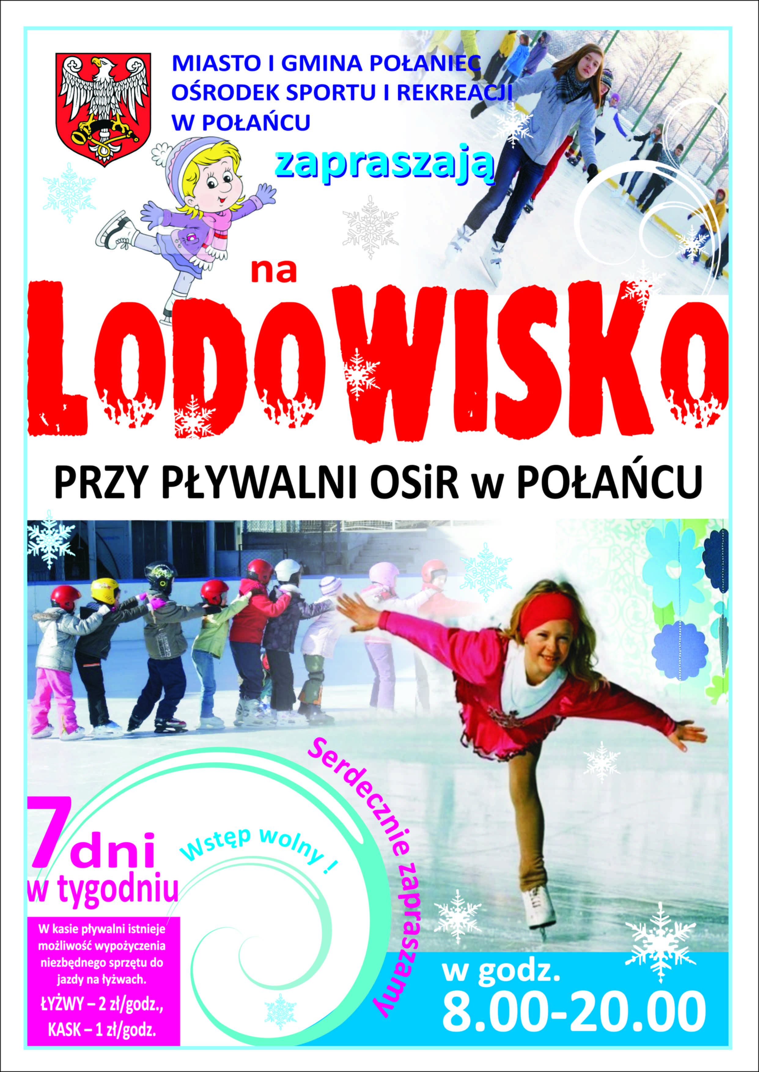 Serdecznie zapraszamy na lodowisko wszystkich miłośników aktywnego spędzania wolnego czasu i świetnej zabawy, dzieci, młodzież szkolną i dorosłych na niezapomniane wrażenia z jazdy na łyżwach.