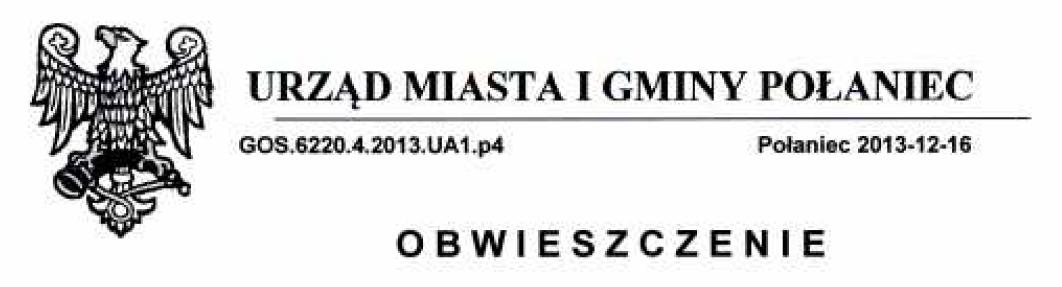 Na podstawie art. 20 ust. 3 ustawy z dnia 8 marca 1990 roku o samorządzie gminnym (t.j. w Dz. U z 2013 roku, poz. 594 ze zmianami) zwołuję sesję Rady Miejskiej w Połańcu w dniu 17 grudnia 2013 r. – godz. 17.15