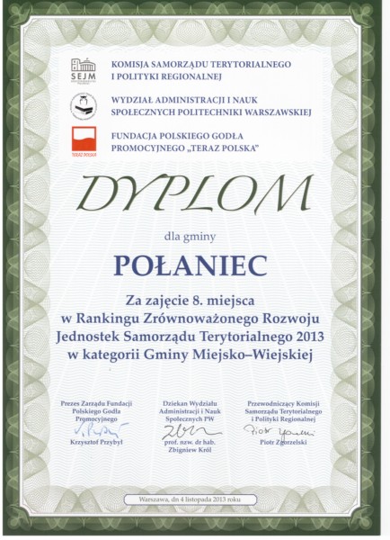 Miasto i Gmina Połaniec to prężnie i systematycznie rozwijająca się jednostka samorządu terytorialnego stanowiąca wzór przedsiębiorczości i pomysłowości. Z roku na rok samorząd gminy wytrwale dąży do rozwoju i poprawy jakości życia mieszkańców. Połaniec jako gmina kreatywna świadomie wybiera to, co najważniejsze. Działania inwestycyjne nie uchodzą uwadze ekspertów, którzy honorują dokonania wieloma certyfikatami, prestiżowymi nagrodami i wyróżnieniami.