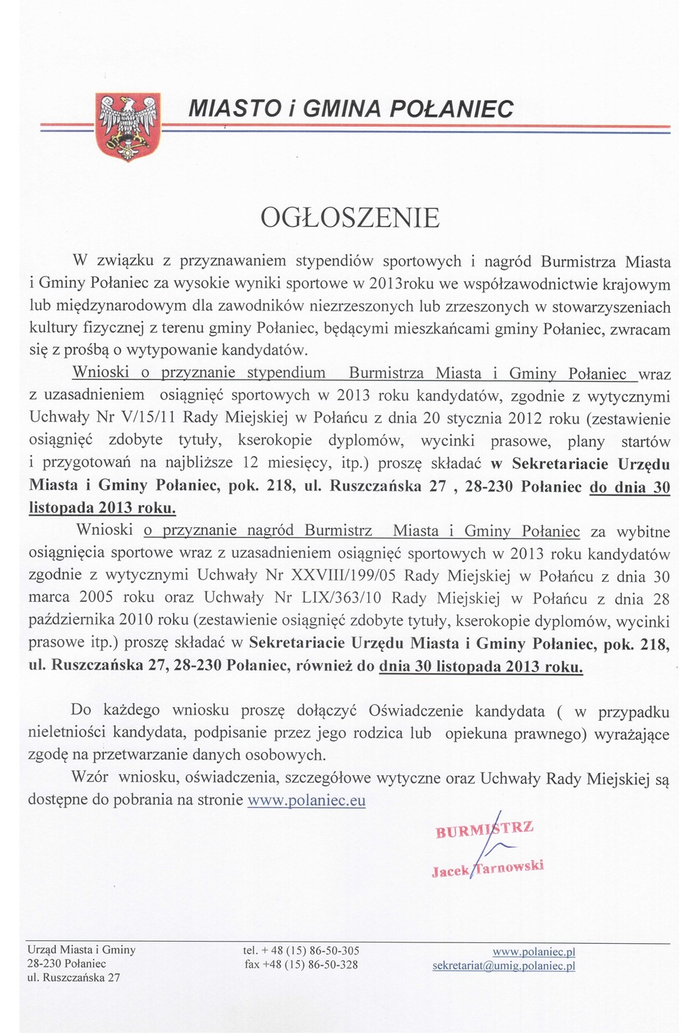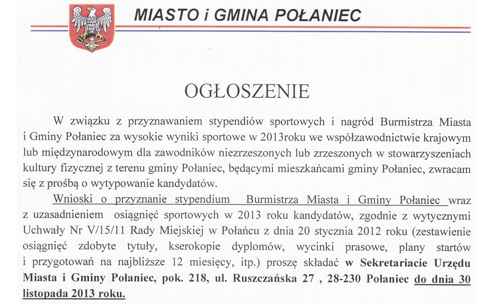 NABÓR WNIOSKÓW NA STYPENDIA SPORTOWE
