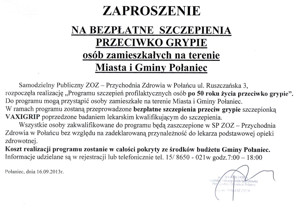 Wszystkich zainteresowanych zapraszamy do siedziby Urzędu Miasta i Gminy w Połańcu, do pokoju nr 126.