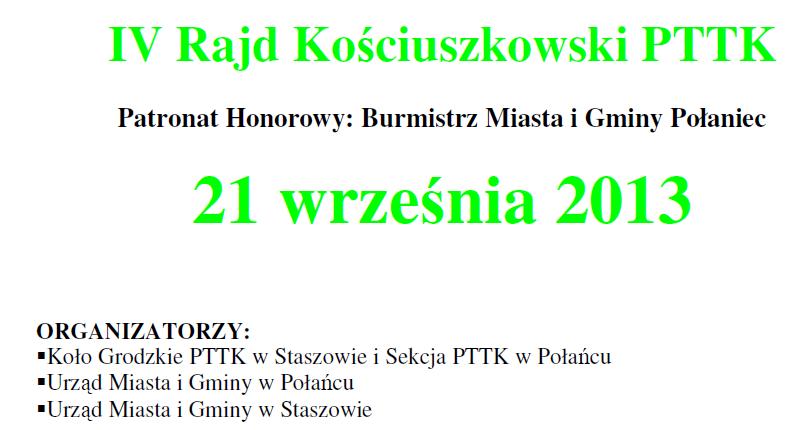Start: godz. 10.00 – plac pod pomnikiem T. Kościuszki w Połańcu