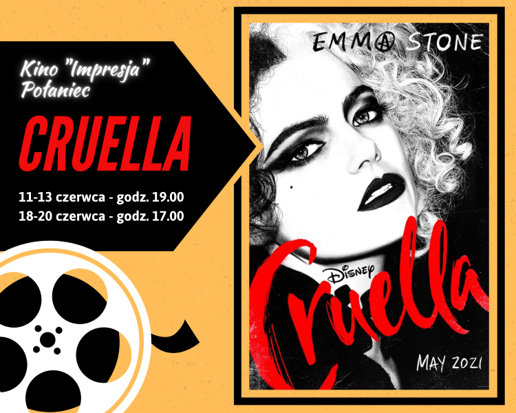 Kino "Impresja" zaprasz na filmy: CRUELLA w dniach 11-13 czerwca o godzinie 19:00 i 18-20 czerwca o godzinie 17:00