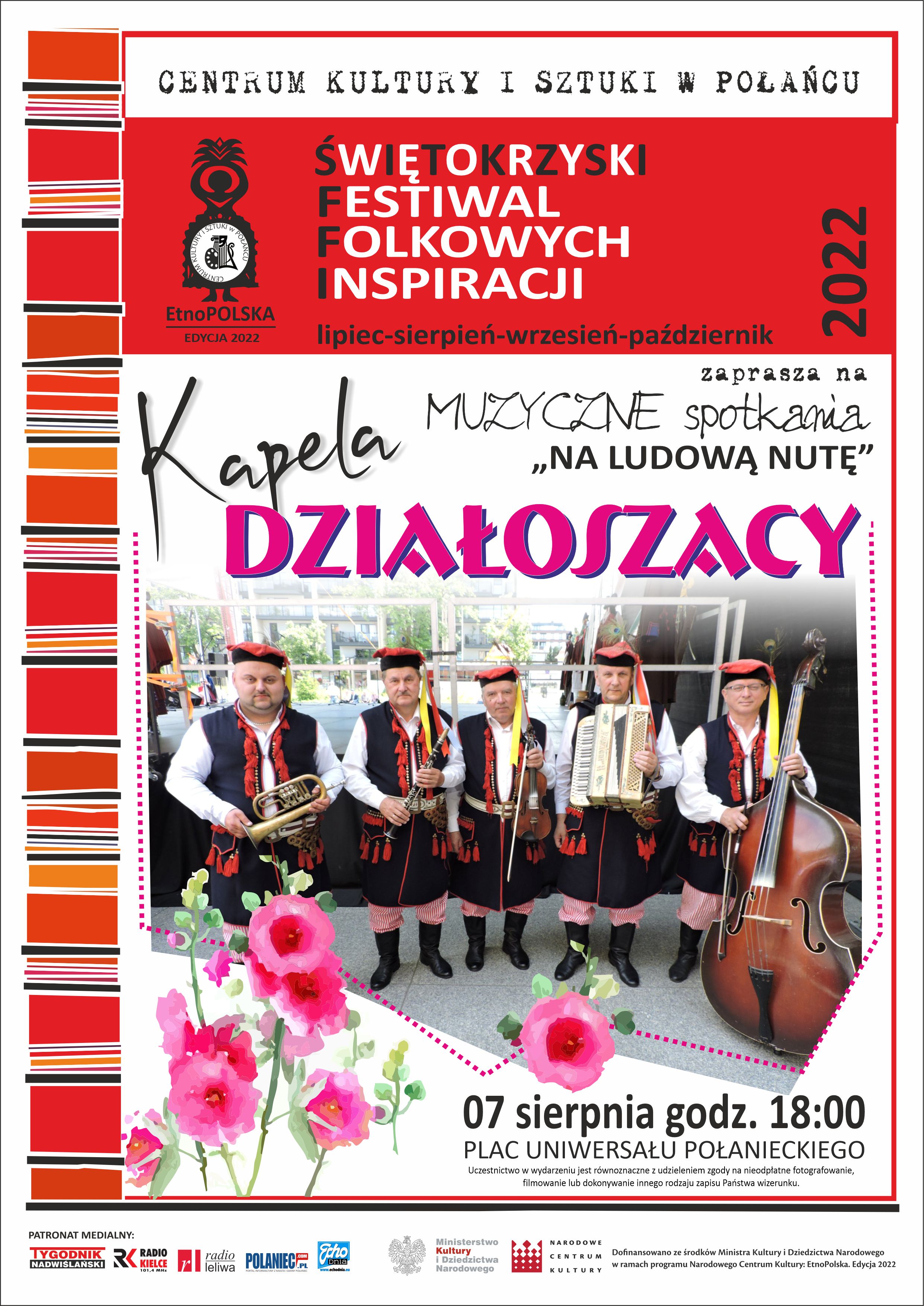 Zapowiada się słoneczny weekend w Połańcu. W niedzielę, 7 sierpnia o godz. 18.00 zapraszamy na Plac Uniwersału Połanieckiego na drugie, Muzyczne spotkanie "Na ludową nutę". Niedzielne popołudnie umili Państwu świętokrzyska Kapela DZIAŁOSZACY