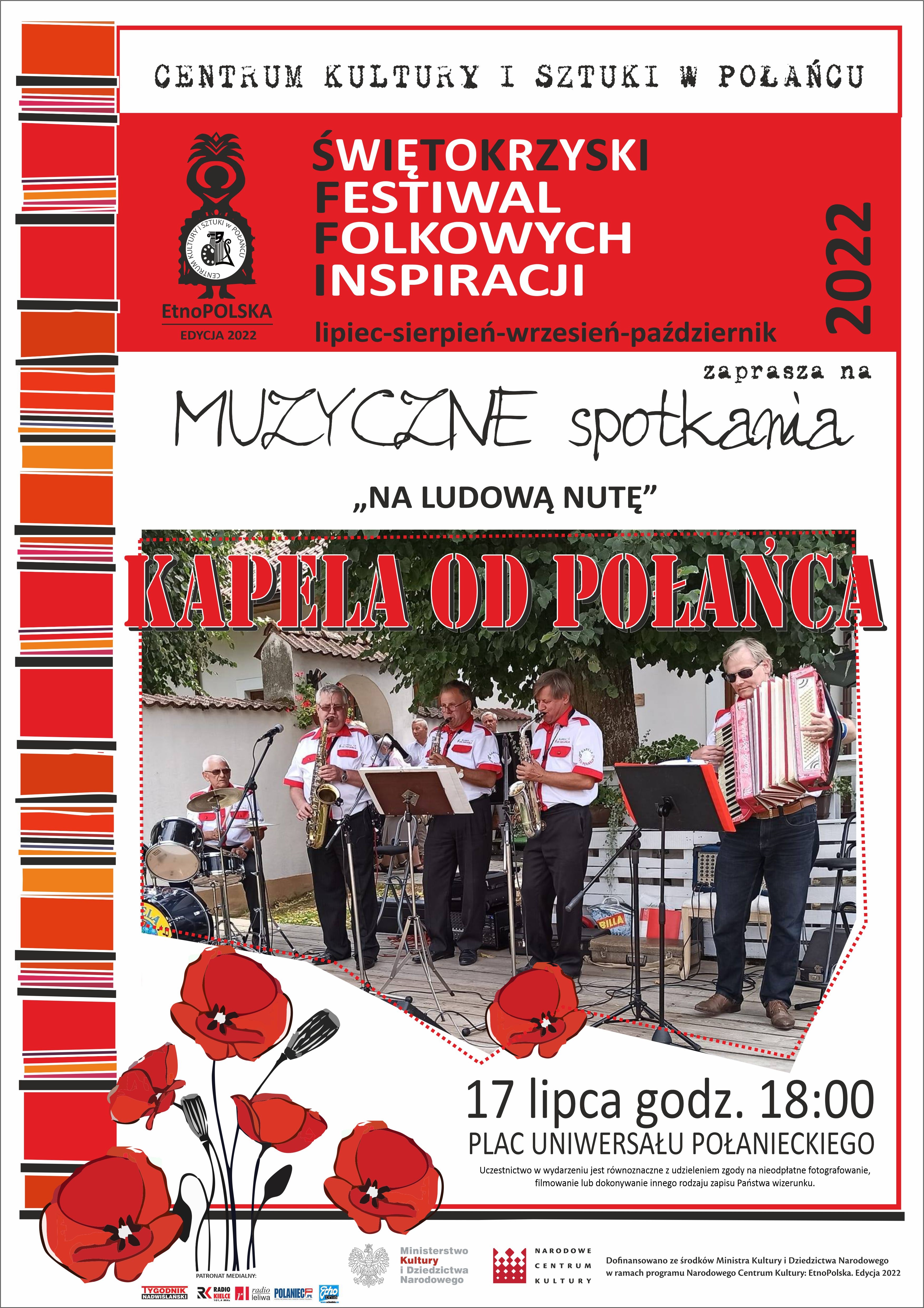 18 lipca 2022 r. przypada 758. rocznica nadania praw miejskich. Z tej okazji Centrum Kultury i Sztuki przygotowało artystyczną niespodziankę. 17 lipca o godz. 18.00 na Placu Uniwersału Połanieckiego Grupa Teatralna Maska i Zespół Ludowy Podkowa pod kierunkiem Pani Małgorzaty Dalmaty - Konwickiej przedstawi krótką prezentację okolicznościową. Tuż po nich wystąpi znana, rodzima „KAPELA OD POŁAŃCA", która gra muzykę XX wieku. Repertuar zespołu stanowią skoczne oberki, polki i walczyki. Zapraszamy serdecznie.