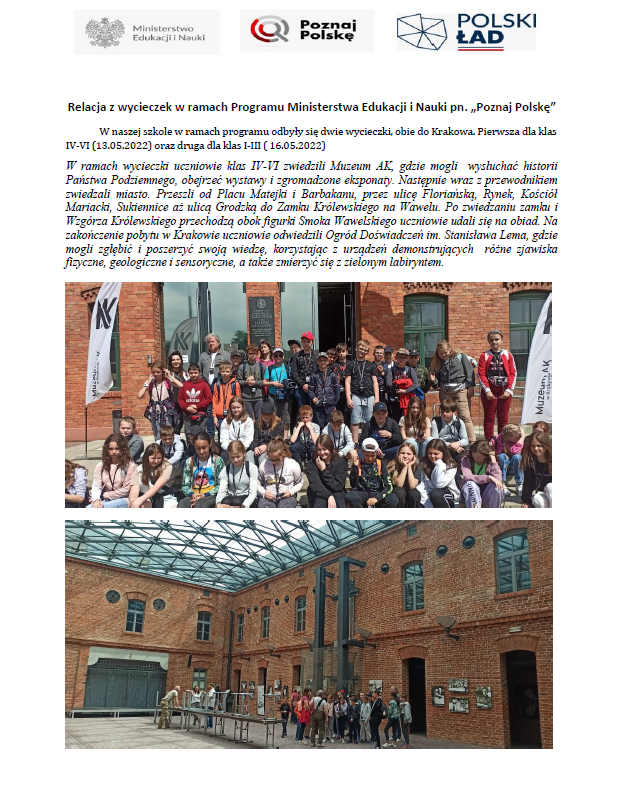 Relacja z wycieczek w ramach Programu Ministerstwa Edukacji i Nauki pn. „Poznaj Polskę”