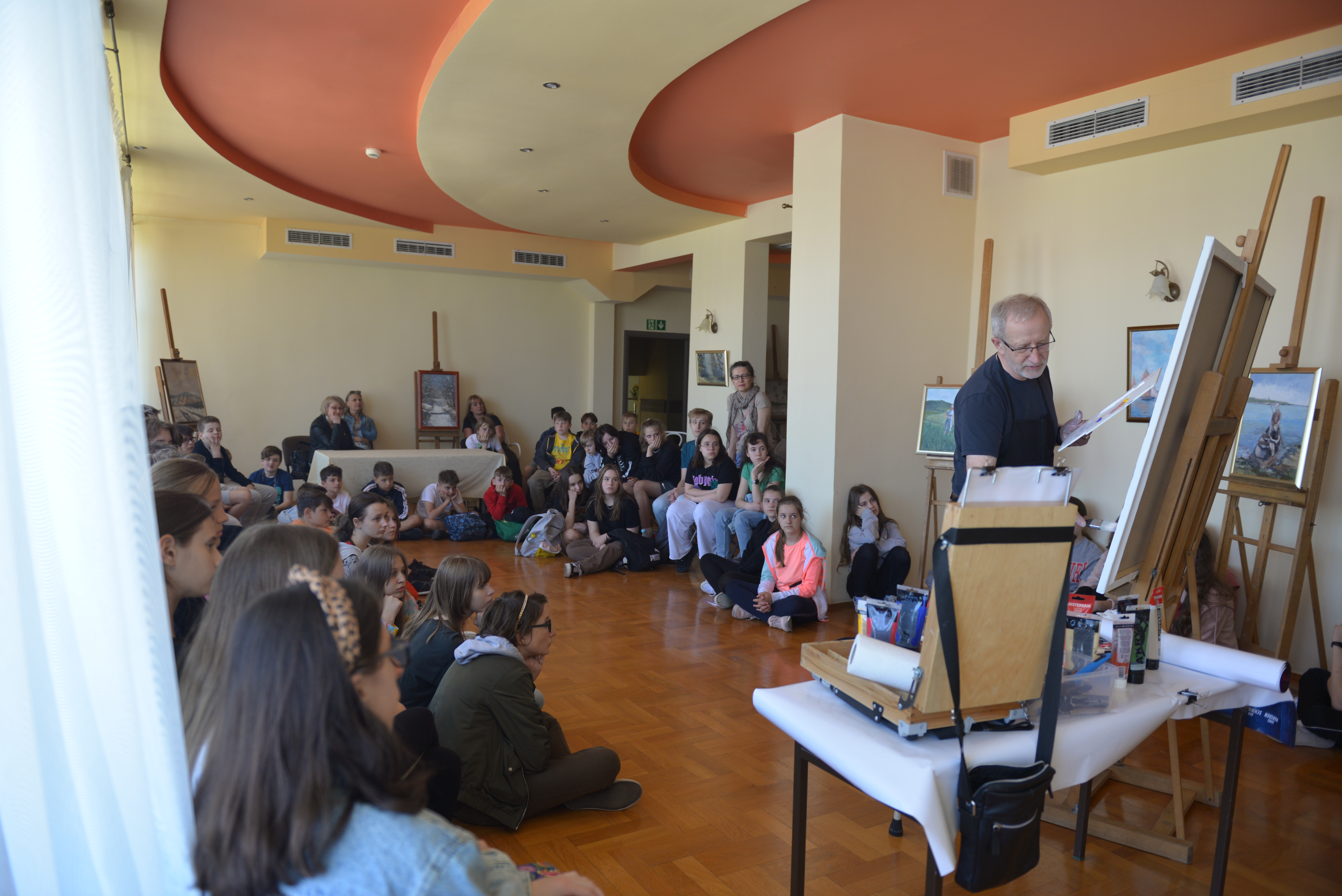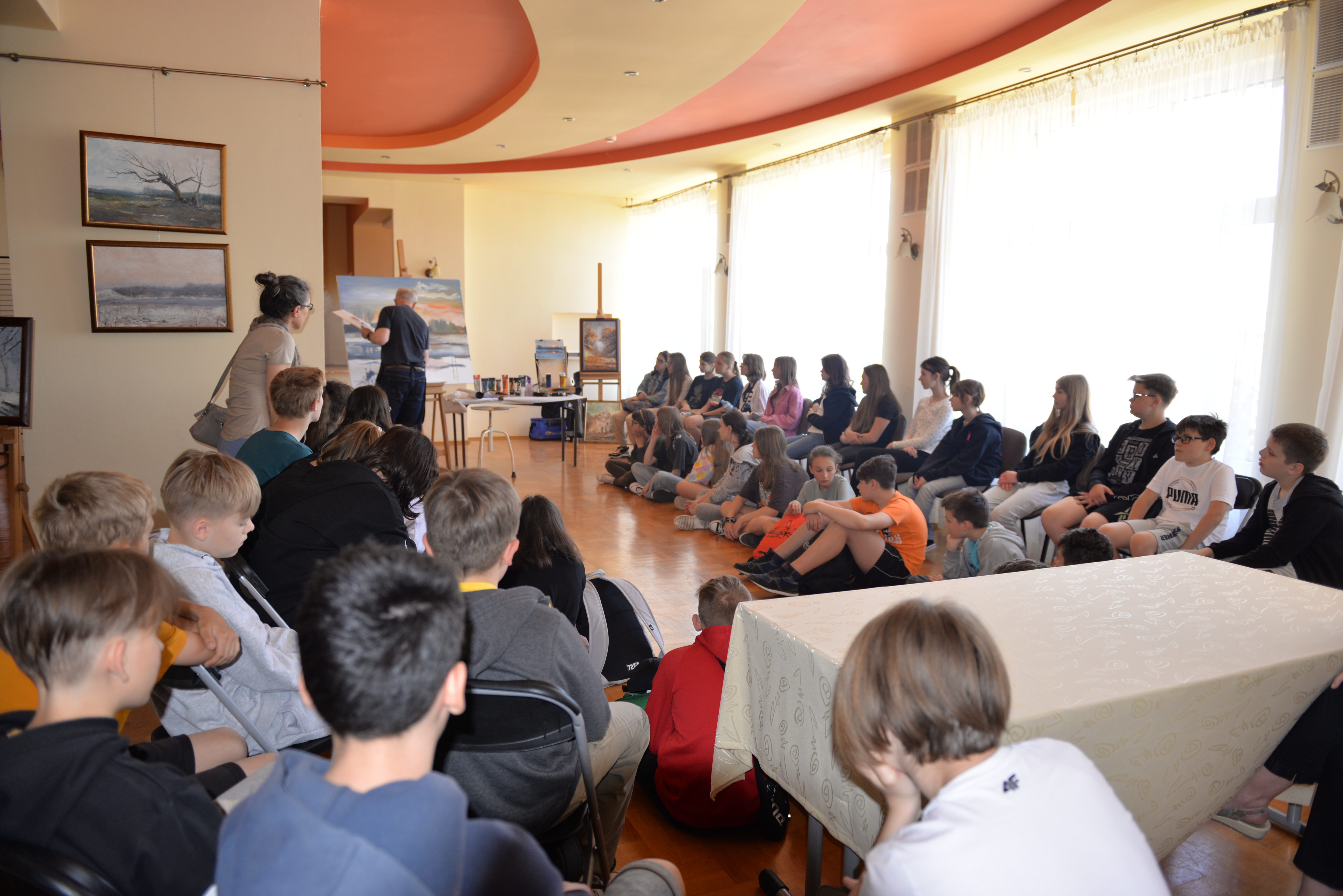 Uczestnikami nietypowego spotkania z Artystą byli uczniowie szkoły podstawowej i średniej w Połańcu. Emocje i niesamowite wrażenia towarzyszyły powstawaniu kolejnego, pięknego obrazu. Nie lada atrakcją była możliwość poznania krok po kroku procesu tworzenia dzieła przez samego mistrza. Od czystego płótna do pełnego kolorów pejzażu. Od kilku przypadkowo nałożonych szpatułką barwnych plam do skończonego dzieła. Gra światła, perspektywa, kolory ciepłe i zimne, technika nakładania farby na płótno to cały rytuał, o którym z przyjemnością opowiadał w trakcie pracy Tadeusz Blicharz. Świadkowie tego procesu twórczego z zaciekawieniem przyglądali się pracy, zadając przy tym mnóstwo pytań. A poziom wiedzy o malarstwie naszej młodzieży zaskoczył samego Artystę. Tego dnia w oczach młodych ludzi stał się on symbolem „poszukiwania pasji i własnego ja”.