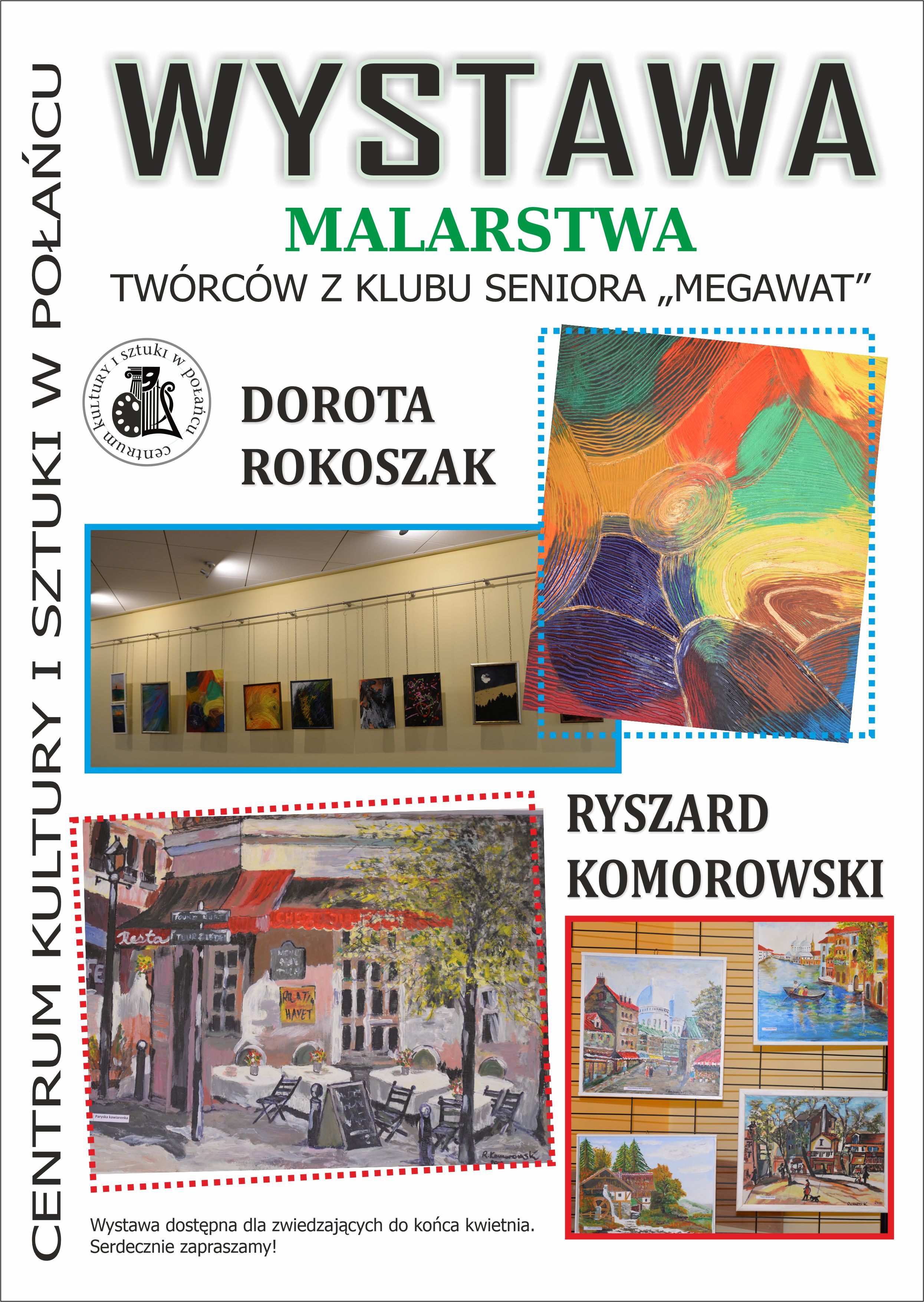 Zapraszamy do obejrzenia wystawy malarstwa twórców z Klubu Seniora MEGAWAT, która udostępniona będzie zwiedzającym od 10 marca w Centrum Kultury i Sztuki w Połańcu.