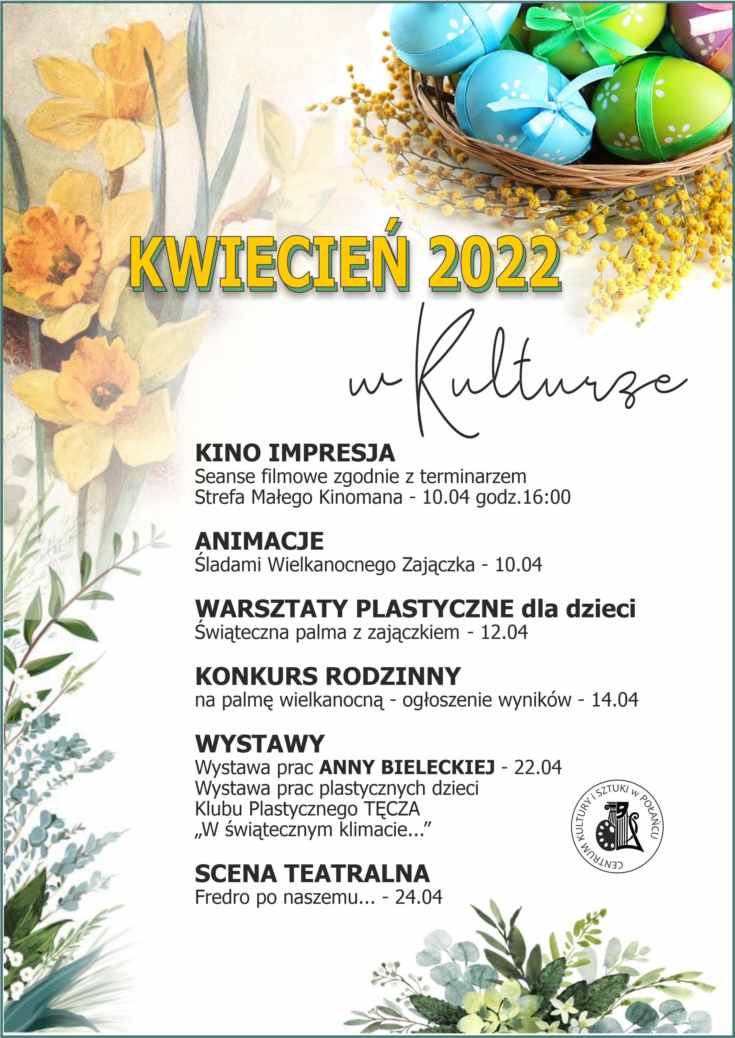 KWIECIEŃ W KULTURZE - Zapraszamy do obejrzenia wystaw i na wydarzenia artystyczne, muzyczne, kinowe i animacje dla dzieci.