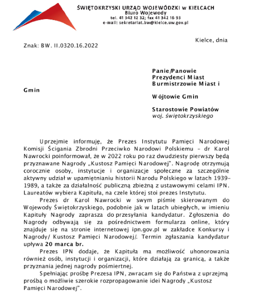 Plakat zawiera informacje dotyczace konkursu "Kustosz Pamięci Narodowej"