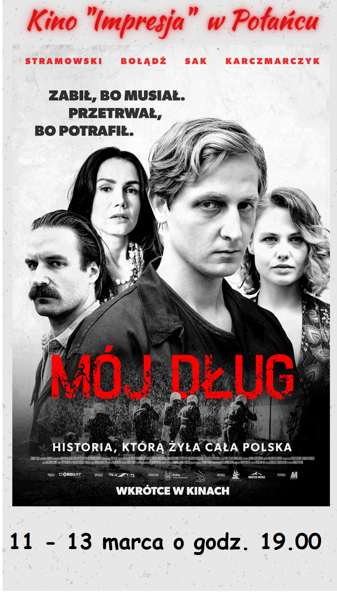 W najbliższy weekend 11 - 13 marca Kino "Impresja" zaprasza o godz. 17.00 na amerykański komediodramat PIES o wielkiej przyjaźni byłym komandosem a suczką Lulu, a o godz. 19.00 na dramat obyczajowy MÓJ DŁUG przedstawiający historię Sławomira Sikory i okrutnej zbrodni, którą media opisywały w połowie lat 90.