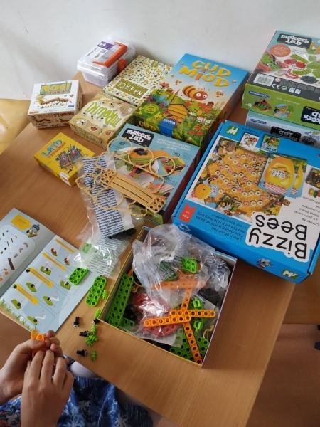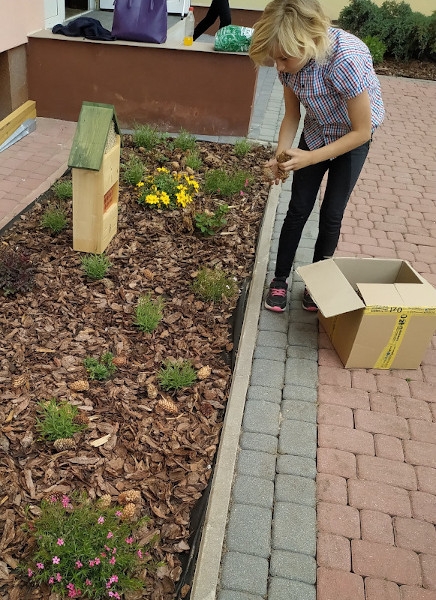 W ciekawy zestaw gier o owadach wzbogaciła się świetlica szkolna, w Dniu Dziecka otworzyliśmy przesyłkę i rozpoczął się turniej gier planszowych. W kwietniu udaliśmy się do szkółki ogrodniczej w Kolbuszowej, gdzie zakupiliśmy rośliny, a następnie urządzono piękne rabaty w patio szkoły. Na koniec realizacji tego projektu zostały zakupione i zamontowane domki dla owadów. Całość wygląda pięknie i będzie służyć całej społeczności szkolnej w czasie zabaw i zajęć na szkolnym patio. W planach montaż edukacyjnych tabliczek i stojaków. Zapraszam do obejrzenia relacji fotograficznej. Dziękuję wszystkim za pomoc!