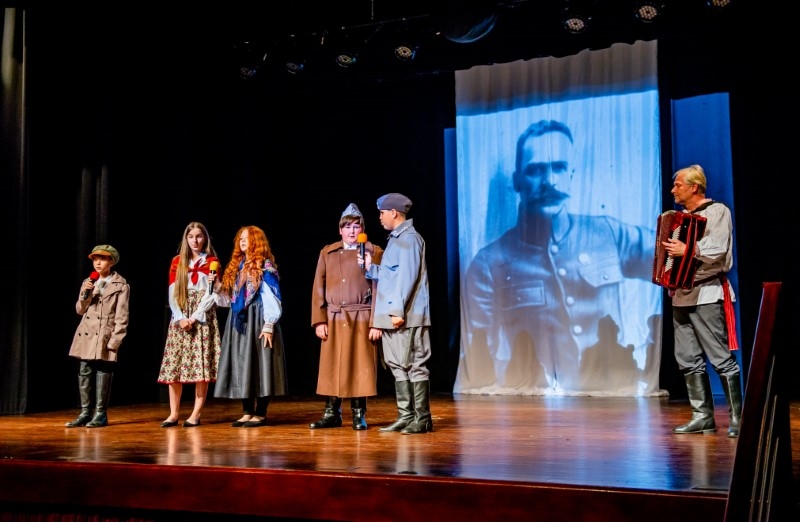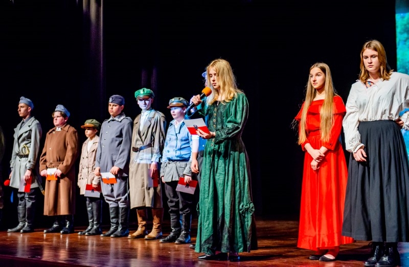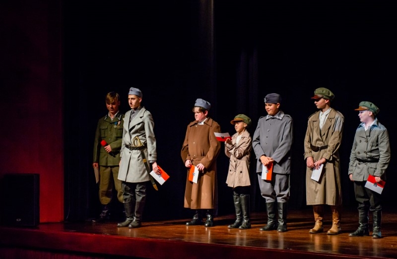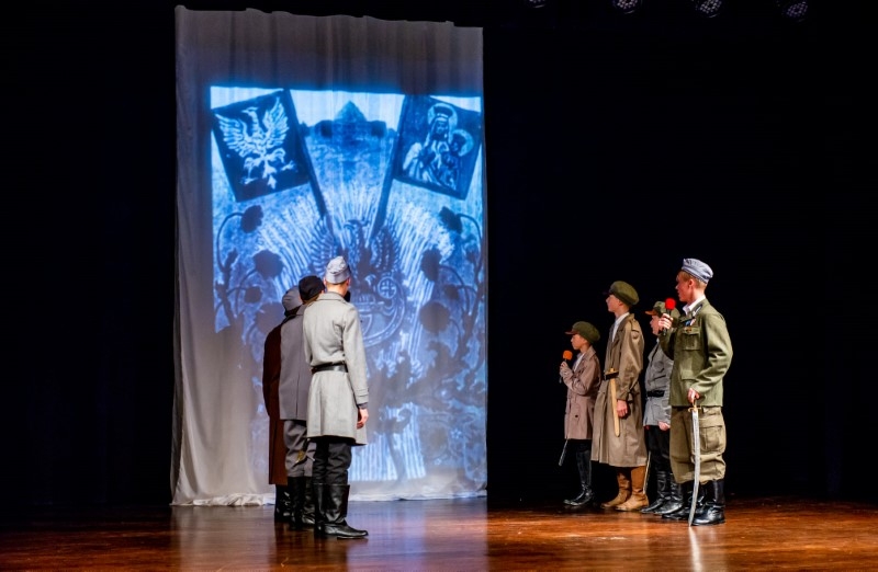 Wszystkich, którzy nie mieli okazji obejrzeć inscenizacji historycznej "Z ORŁEM NA PIERSIACH" w wykonaniu grupy teatralnej "Maska" z Centrum Kultury i Sztuki w Połańcu zapraszamy na fotograficzną relację z występu. Bohaterem inscenizacji jest rodowity połańczanin Bolesław Kubik, żołnierz kawalerii II Brygady Legionów Polskich. Reżyserem inscenizacji i autorem scenariusza jest Pani Małgorzata Dalmata-Konwicka. Historia ułana Legionów Polskich Bolesława Kubika pokazuje, że odwagę nie mierzy się życiowym doświadczeniem i wiekiem człowieka, a wolą walki i miłością do Ojczyzny. Bolesław Kubik jako 17 letni chłopak ginąc pod Rokitną stał się symbolem walki o niepodległość Polski. Pośmiertnie został odznaczony Krzyżem Niepodległości „za pracę w dziele odzyskania niepodległości” i Krzyżem Virtuti Militari.