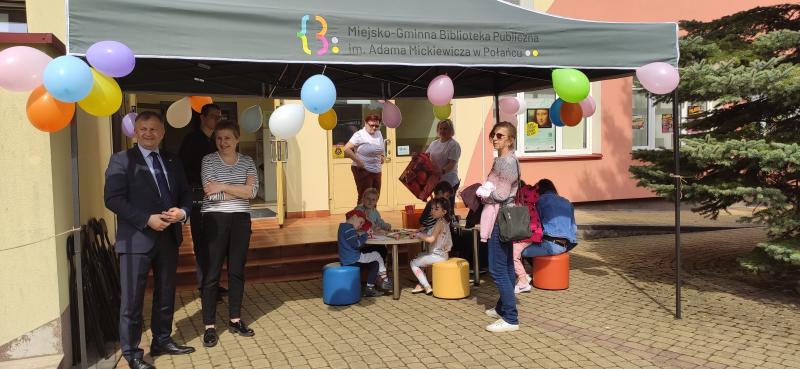 Pierwsza biblioteczna majówka przeszła właśnie do historii! Odbyła się w ramach Dni Połańca oraz Tygodnia Bibliotek obchodzonego w tym roku pod hasłem „Biblioteka – świat w jednym miejscu”. Jest nam miło, że w tym dniu mogliśmy liczyć na obecność Burmistrza Połańca, Pana Jacka Nowaka, który wraz z Panią Dyrektor Biblioteki powitał wszystkich obecnych i życzył dobrej zabawy. Piknik rodzinny zorganizowaliśmy przy wsparciu partnera wydarzenia, którym był Bank Spółdzielczy w Połańcu.