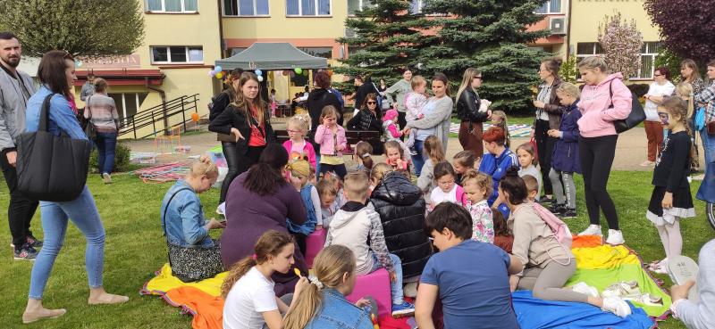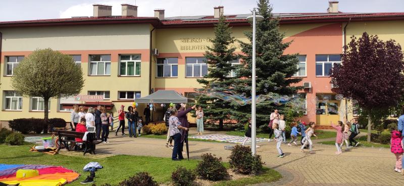 W piątek 6 maja popołudniową porą plac przed Biblioteką Publiczną w Połańcu tętnił życiem. Już z daleka było słychać radosny gwar, który z minuty na minuty przyciągał coraz więcej osób chcących dołączyć do wspólnej zabawy. A dobrej zabawy nie brakowało! Zagwarantowali to animatorzy z grupy „Frajda”, którzy rozkręcili wszystkich pokazem mega baniek mydlanych. Zdawało się, że bańki leciały aż do chmur niosąc ze sobą dziecięce śmiechy. Gdy już ostatnia bańka odleciała przyszła pora na dalsze piknikowe atrakcje.