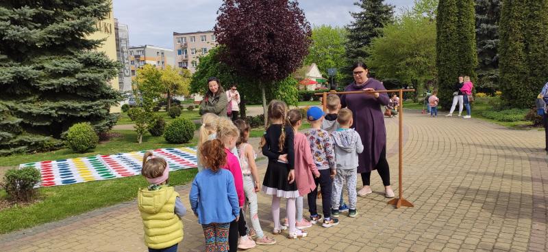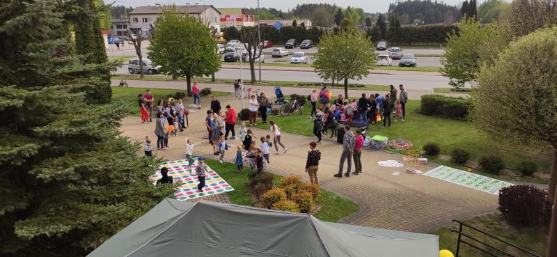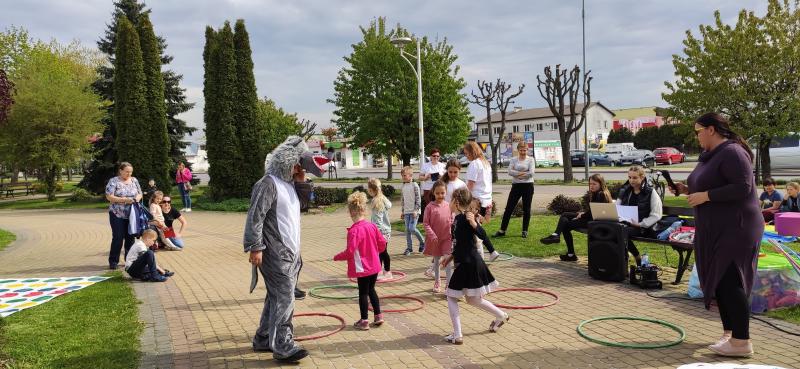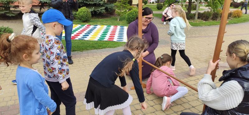 Podczas majówki królowały dynamiczne zabawy ruchowe przy skocznej muzyce z wykorzystaniem między innymi hula-hop, liny, husty klanzy i kolorowych piłeczek. Można było pogimnastykować się na mega planszy do Twistera i wypróbować swoją gibkość podczas starej jak świat zabawy - limbo. Limbo to zabawa polega na przechodzeniu uczestników w rytm muzyki pod stale obniżaną poprzeczką lub pod zwykłym kijem trzymanym przez dwie osoby lub opartym na specjalnej konstrukcji. Poprzeczki nie można strącić żadną częścią ciała, a na koniec co bardziej wytrwali przechodzą pod nią pełzając. Śmiechu jest przy tym co niemiara!