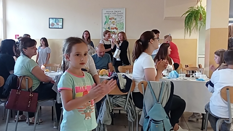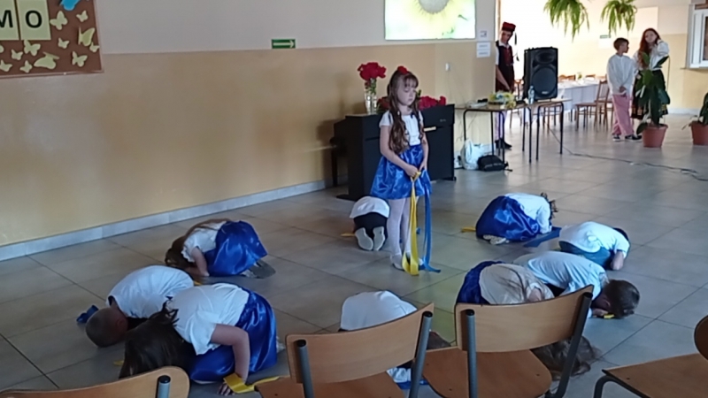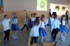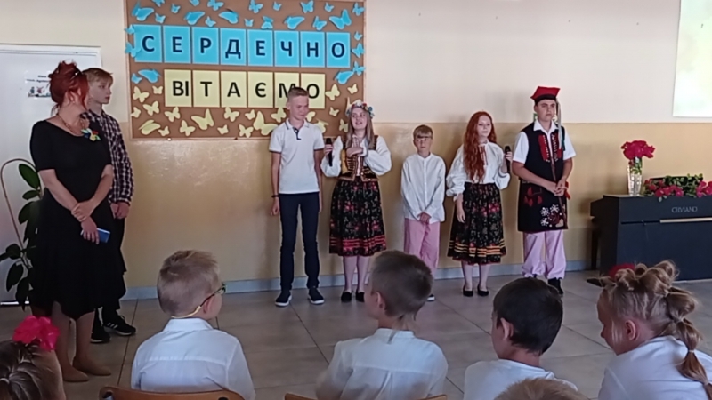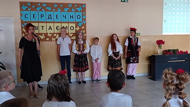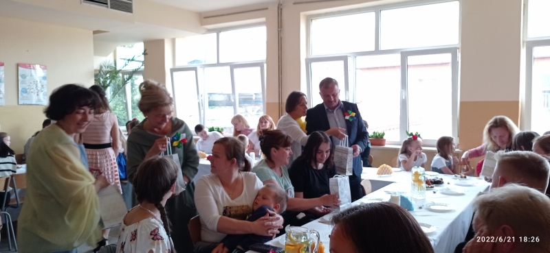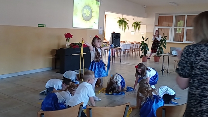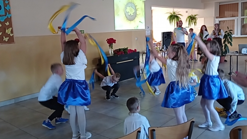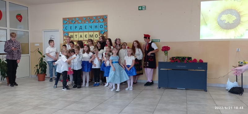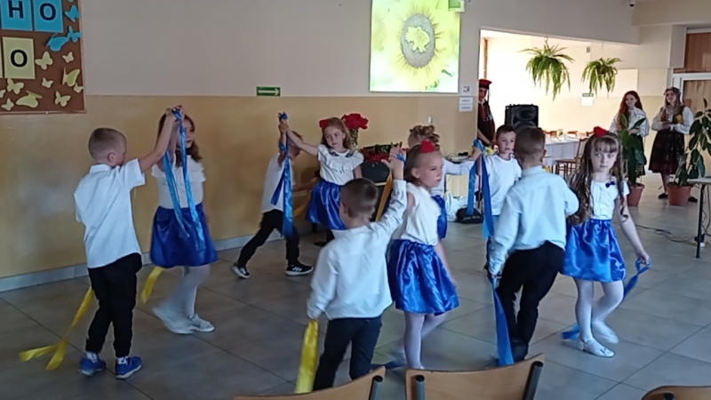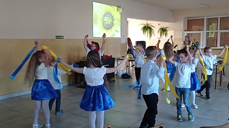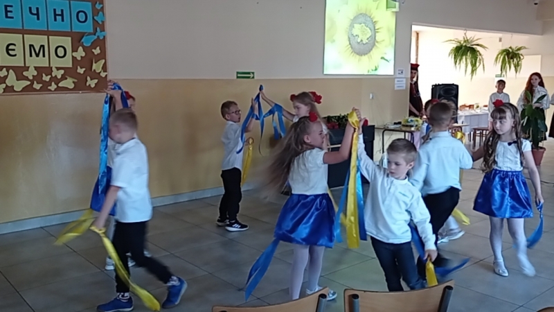 Przebogaty program artystyczny zaprezentowany zarówno przez uczniów ukraińskich, jak i naszych, w którym nie zabrakło znanych ukraińskich pieśni – dumek, m.in. „A cij to kiń stoit”, „Tecze woda”, „Pydmanula pydvela”, piosenek – „Sze ne zmerla Ukraina”, „Ukraina to Ty”, „Czerwona Kalina”, „Gdzieś po świcie”, tańców do utworu „Mam tę moc”, walca angielskiego, wierszy – „Moja Ukraina”, „Niezależna i jedyna”, „Ja – dziecina ukraińska”, dostarczył wszystkim zgromadzonym wielu niezapomnianych wrażeń i wzruszeń dając nadzieję na lepsze jutro… Podkreśliła to w swoim wystąpieniu Pani Irina, przedstawicielka rodziców naszych ukraińskich uczniów. Wspaniale spisały się również nasze Panie – kucharki serwując ciasta i potravkę drobiową z warzywami według receptur ukraińskich.