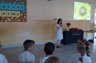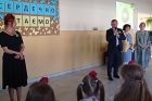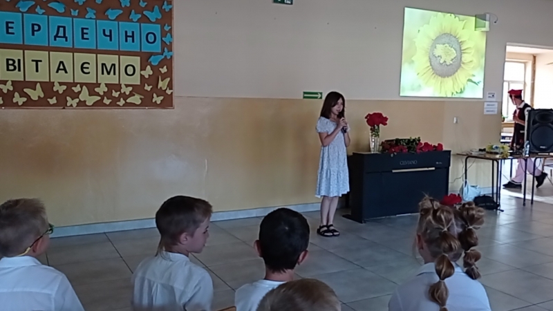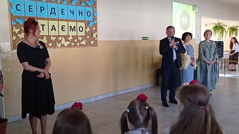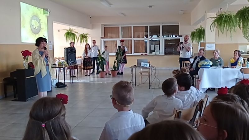 „Witamy wszystkich bardzo serdecznie na dzisiejszym spotkaniu pt. „Popołudnie z Ukrainą”. Gorąco witam Burmistrza Miasta i Gminy Połaniec - Pana Jacka Nowaka, Panią Sekretarz – Bogumiłę Niespodziewaną, rodziców, uczniów, nauczycieli i dyrekcję szkoły. Nasz kraj – Polska, nasza gmina i nasza szkoła, stały się dla Was drugim domem, w którym możecie się uczyć, bawić, spędzać miło i pożytecznie czas, czuć się bezpieczni. Słowo „wojna” z niczym dobrym się nie kojarzy, lecz wspólnie musimy sobie poradzić z tym okrucieństwem, bo w życiu trzeba sobie pomagać, a Ukraina jest naszym najbliższym sąsiadem. Mamy nawet miasto partnerskie na Ukrainie – Svalavę. Jesteśmy dumni, że w murach naszej szkoły, możemy gościć uczniów z Ukrainy i ich rodziców. Te wspólnie spędzone ponad trzy miesiące sprawiły, że nawiązaliśmy nowe kontakty, nowe relacje, przyjaźnie, wymieniliśmy się doświadczeniami, co daje nam wszystkim wiele korzyści. Dziś czas podsumowań tego, co za nami, co zostało zbudowane i co należy kontynuować. Niech te wszystkie tańce, wiersze, piosenki, które już za moment wszyscy będziemy mieli okazję podziwiać, splotą się jak podane dłonie w piosence pt. „Podaj rękę Ukrainie”. Drodzy rodzice i uczniowie! Począwszy od 11 marca 2022 roku, zawitaliście do naszej szkoły. Kilkoro uczniów wraz z najbliższymi już wyjechało do swojej ojczyzny. Do chwili obecnej w naszej placówce uczy się 34 uczniów z Ukrainy. W związku ze zmianami przepisów i dzięki współpracy z Panem Burmistrzem i pracownikami Urzędu, staraliśmy się wspomagać Państwa w odnalezieniu się w nowej rzeczywistości. Utworzyliśmy oddziały przygotowawcze, w których wychowawcami są Panie: wicedyrektor Małgorzata Sokołowska oraz Agnieszka Malińska i Katarzyna Połetek, Karolina Łukaszek – oddział przedszkolny. Dwie uczennice przystąpiły do egzaminu ósmoklasisty, z którymi wspólnie przeżywaliśmy to wyzwanie i trzymaliśmy kciuki. Wspólnie także obchodziliśmy Święto Szkoły, Dzień Matki. Teraz zbliża się czas wakacji i zasłużonego odpoczynku. Kończąc życzę wszystkim rodzicom i dzieciom, małym i dużym, bezpiecznych i zdrowych wakacji, pełnych wrażeń. Drodzy uczniowie! Wraz z nastaniem września zapraszam wszystkich Was do kontynuowania nauki w naszej szkole, jeśli zostaniecie w Połańcu. Dziękuję.”