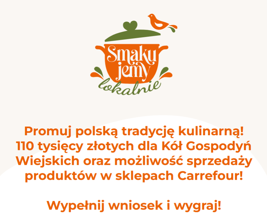 Carrefour Polska przekaże Kołom Gospodyń Wiejskich granty w wysokości 110 tysięcy złotych. Jedno Koło, może wygrać 10 000 zł. Warunkiem jest prawidłowe złożenie wniosku na projekt w zakresie:
