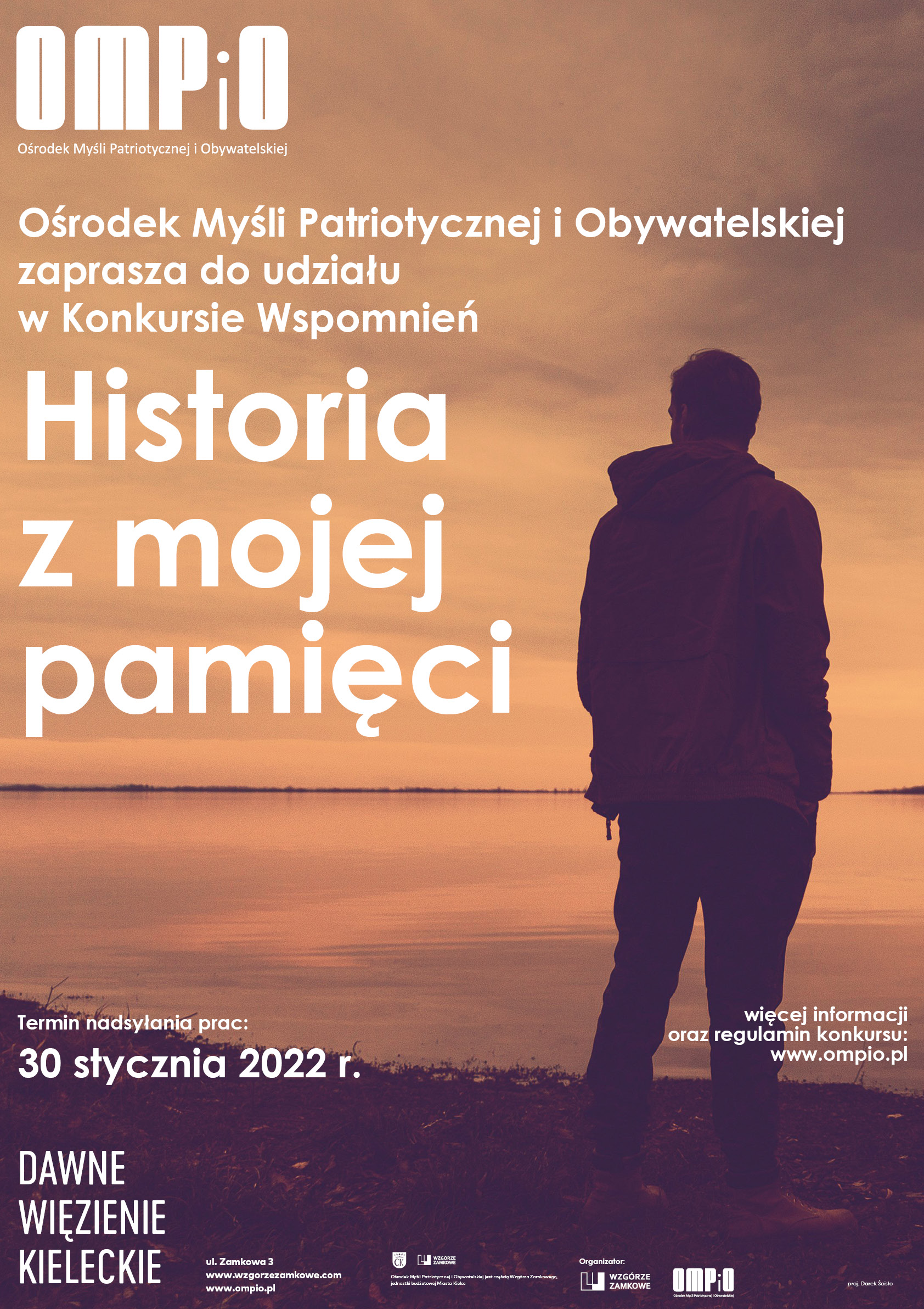Zapraszamy do udziału w Konkursie wspomnień ,,Historia z mojej pamięci". Na zwycięzców czekają cenne nagrody. Więcej informacji na stronie internetowej Ośrodka Myśli Patriotycznej i Obywatelskiej w Kielcach: http://ompio.pl/2021/06/konkurs-wspomnien-historia-z-mojej-pamieci-3/