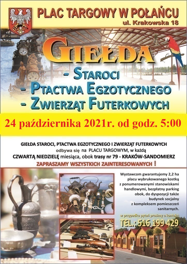 Zapraszamy na Gięłdę Staroci, Ptactwa i Zwierząt Futerkowych w dniu 24 października 2021 r. od godziny 5:00.