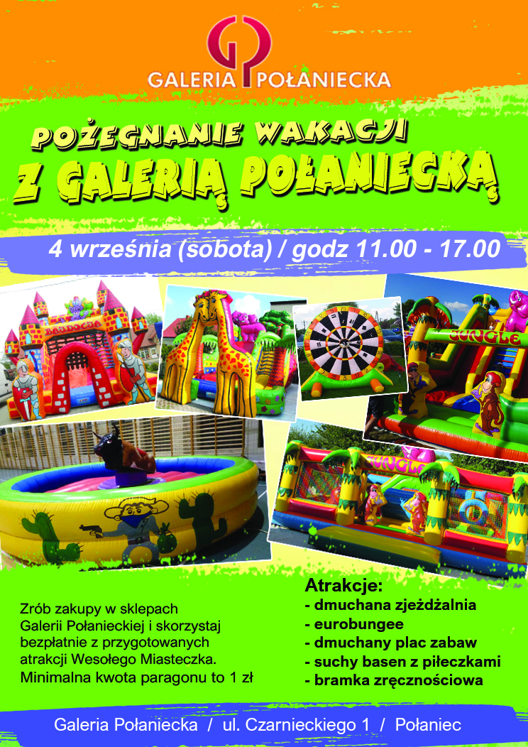 W sobotę 4 września 2021 roku przy Galerii Połanieckiej odbędzie się impreza plenerowa dla dzieci z okazji zakończenia wakacji.