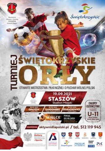 Zapraszamy do wzięcia udziału w rozgrywkach piłkarskich pod nazwą: "Otwarte Mistrzostwa Piłki Nożnej o Puchar Wolnej Polski - Świętokrzyskie Orły". Turniej Świętokrzyskie Orły odbędzie się 19 września na Stadionie Miejskim w Staszowie.Uczestnikiem turnieju mogą być chłopcy rocznika 2011 i młodsi i dziewczynki rocznika 2010 i młodsze ( dopuszcza się możliwość udziału drużyn mieszanych).