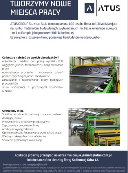 Oferta pracy na stanowisko - Kierownik linii produkcyjnej