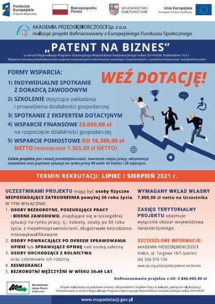 Akademia Przedsiębiorczości sp. z o.o. realizuje projekt „PATENT NA BIZNES"
