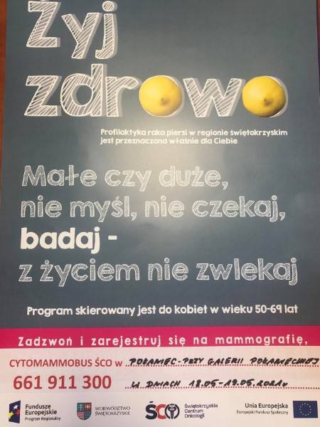 W dniach 18 - 19 maj 2021r. przy Galerii Połanieckiej w ramach profilaktyki raka piersi w regionie świętokrzyskim stanie Cytomammobus ŚCO.