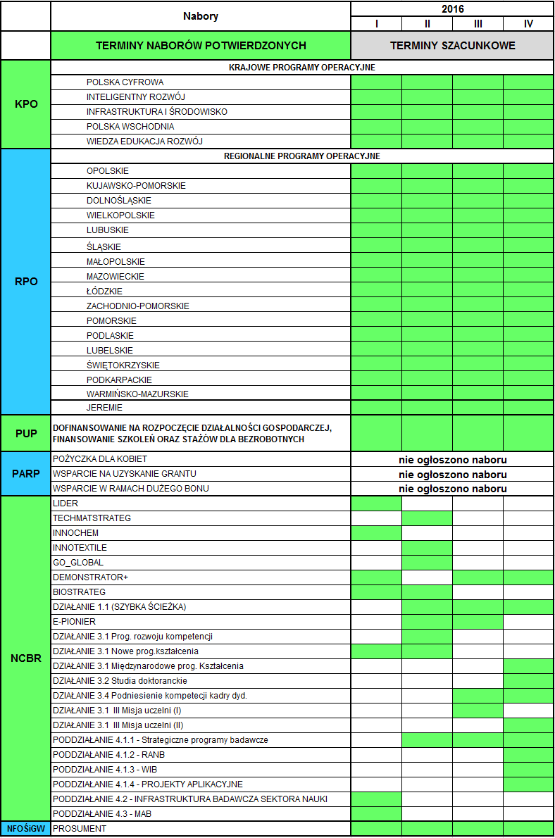 AKTUALNE NABORY - DOTACJE UNIJNE I DOFINANSOWANIA 2016 R.