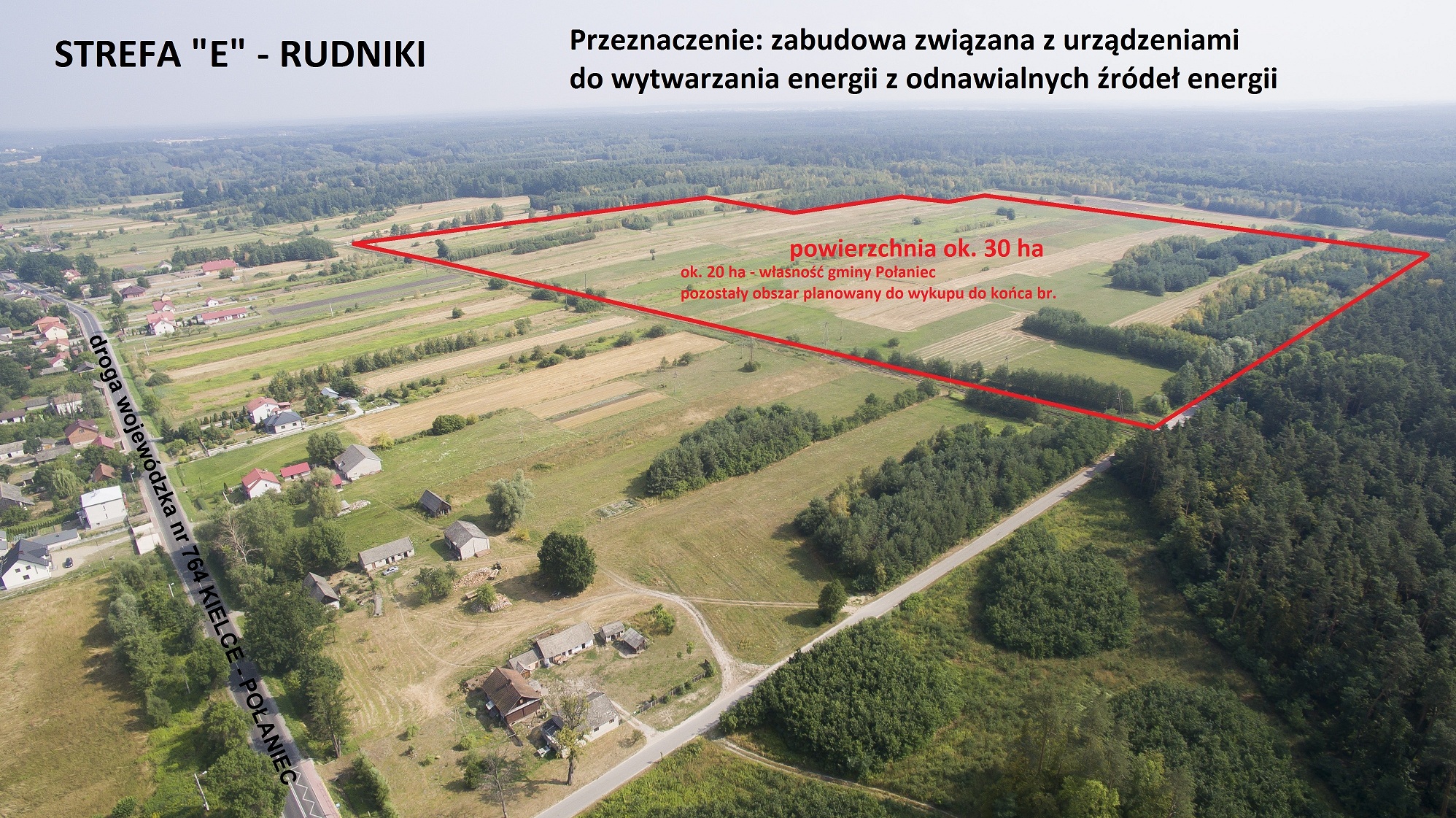 Obszar „E” w miejscowości Rudniki z przeznaczeniem docelowym pod zabudowę nowoczesnych technologii związanych z odnawianymi źródłami energii.