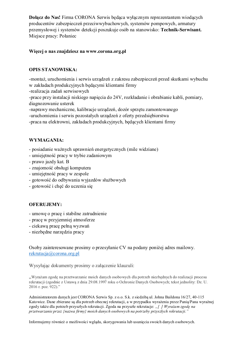 PEŁNA TREŚĆ OGŁOSZENIA - zobacz TUTAJ!